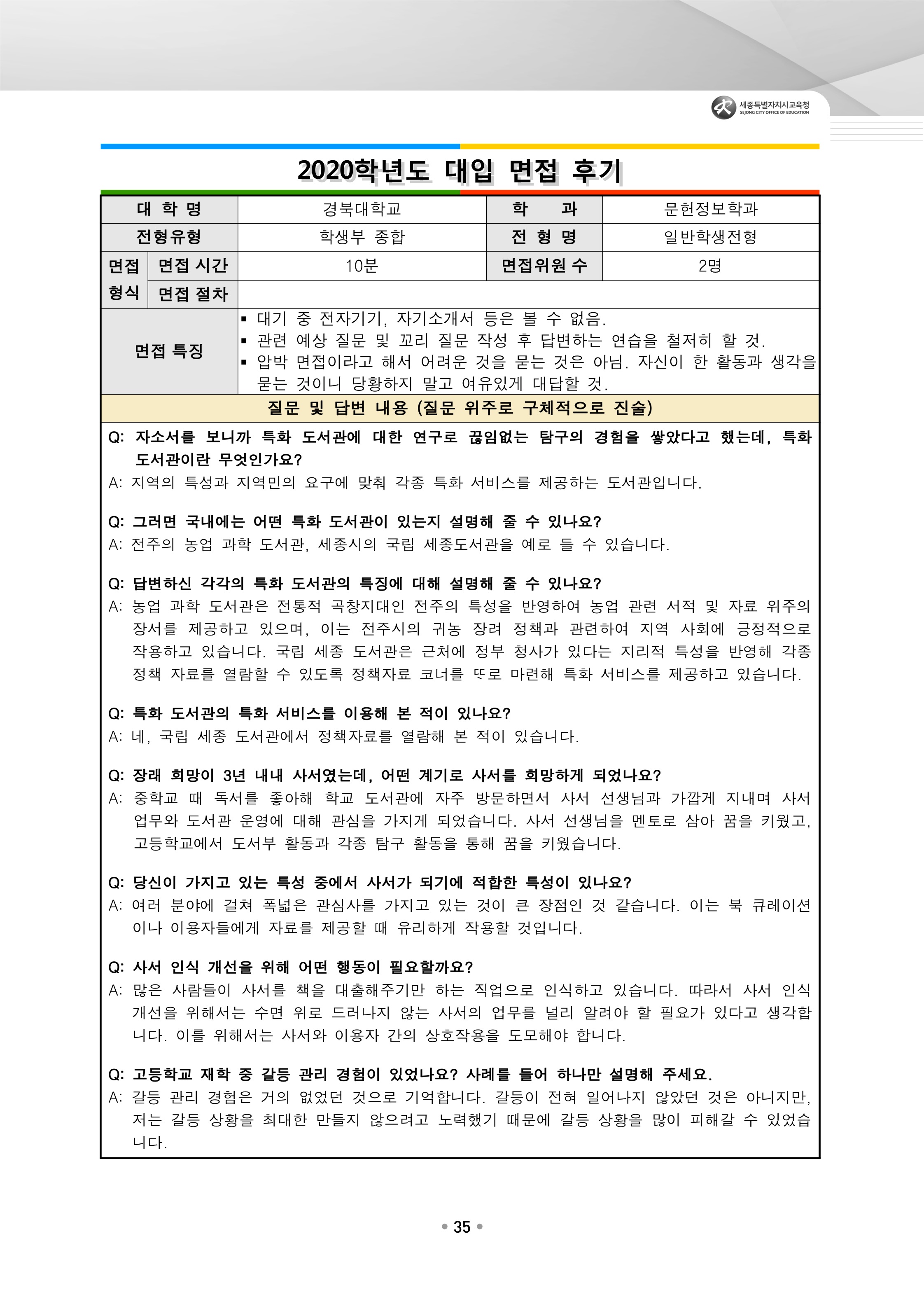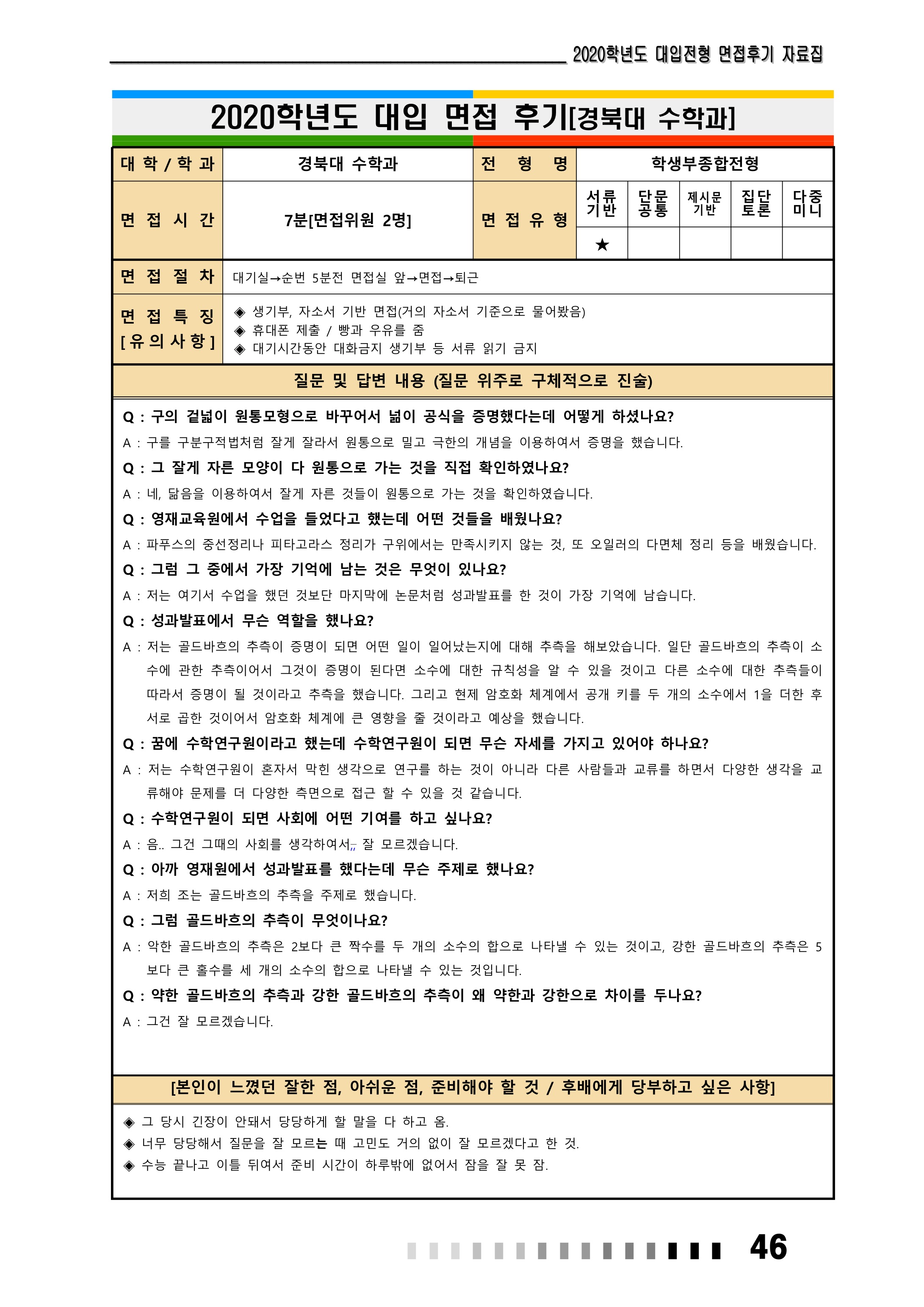 2021학년도 경북대학교 면접 후기64 - 심리학과 2021학년도 경북대학교 면접 후기65 - 에너지공학부