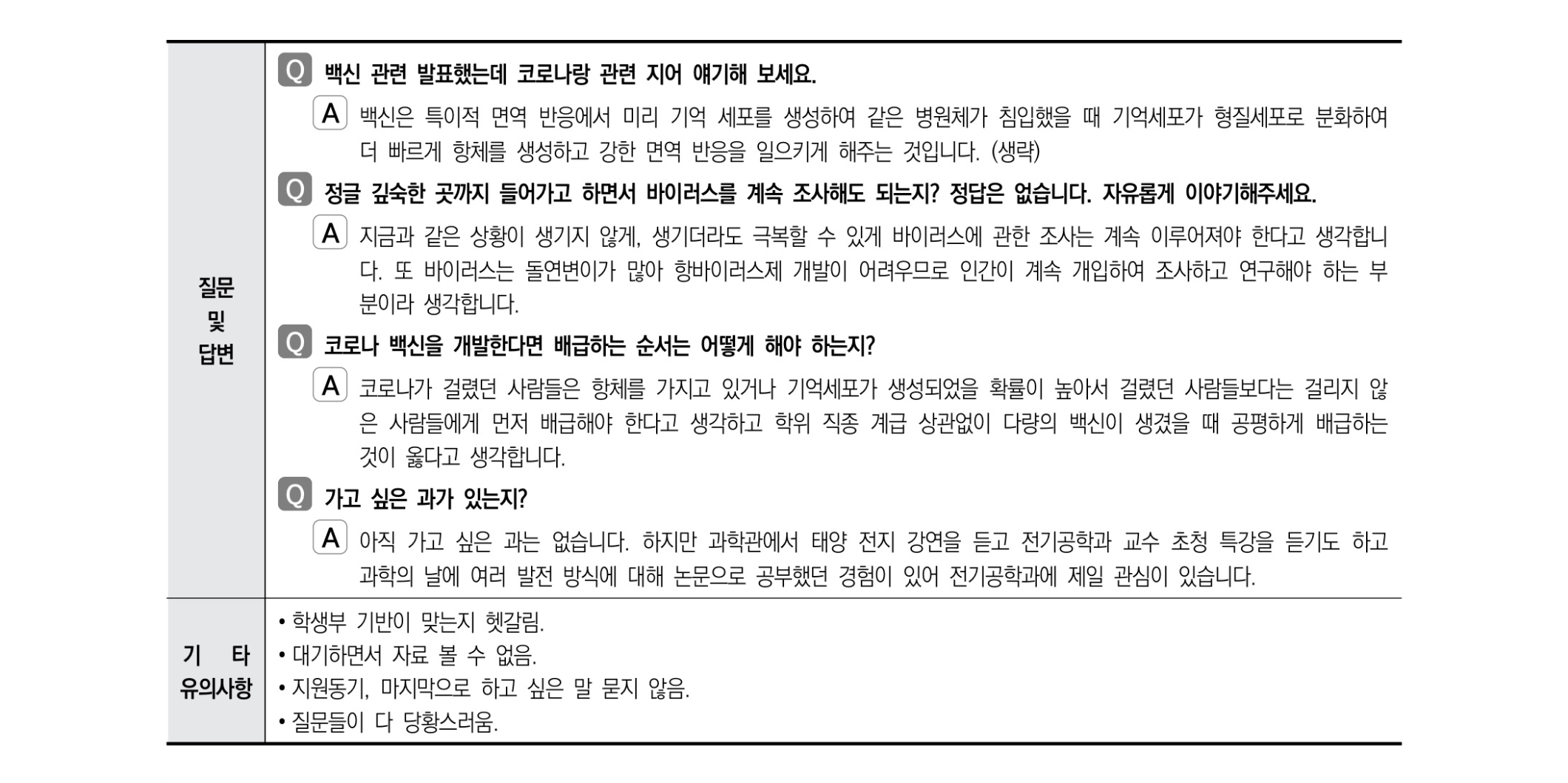 - 1, 2학년 때까지 과학교사가 꿈이었는데 가정교사로 꿈을 바꾸게 된 계기는?