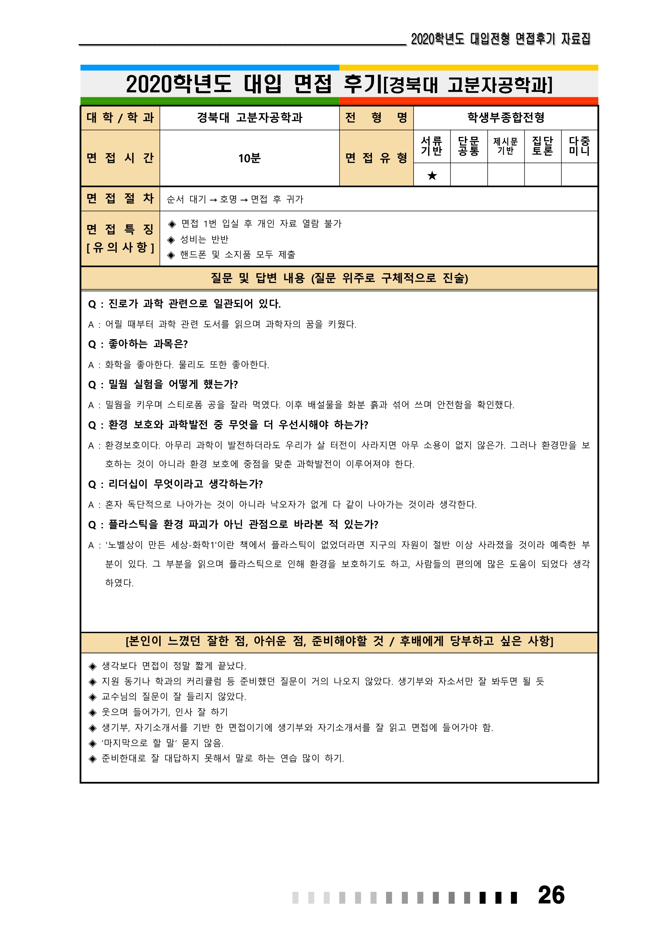 2021학년도 경북대학교 면접 후기83 - 응용화학공학부 2021학년도 경북대학교 면접 후기84 - 의류학과
