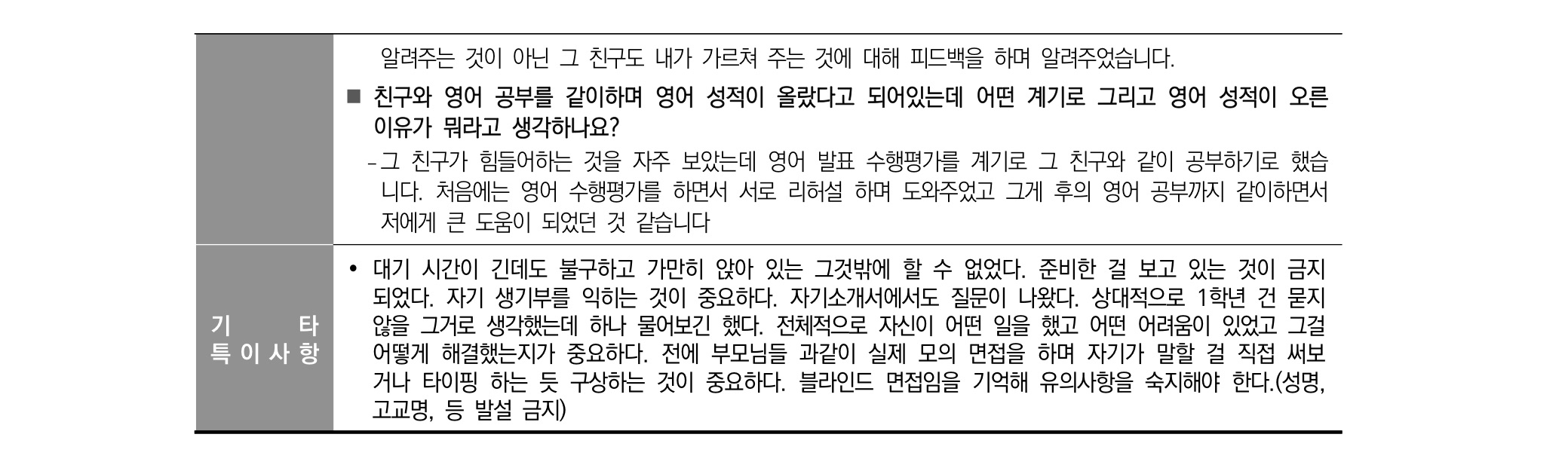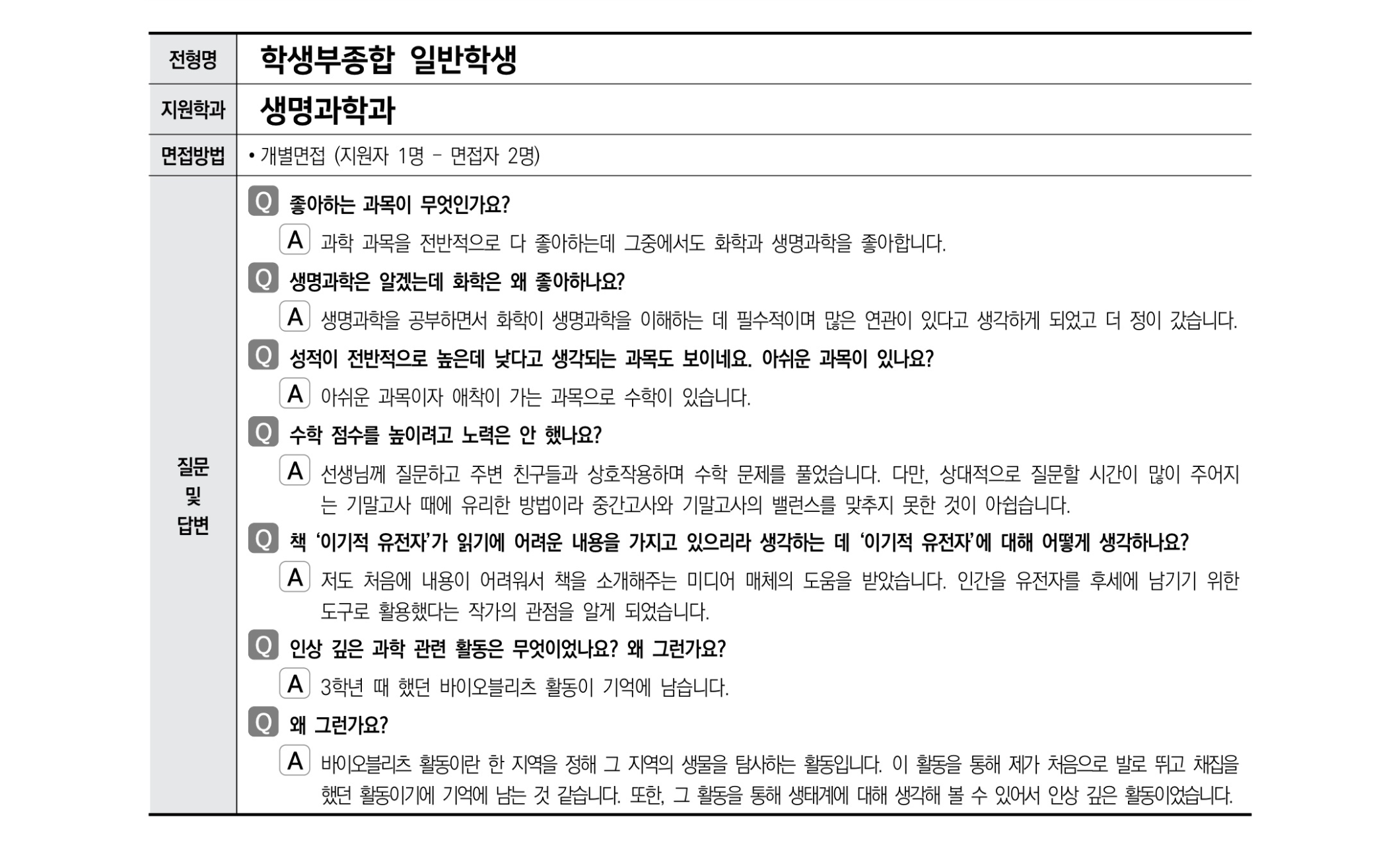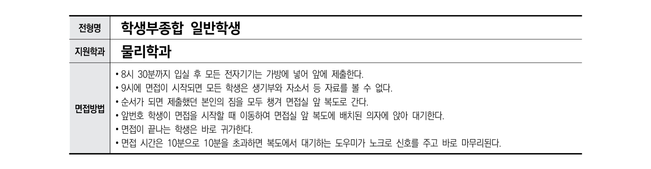 학생부 종합전형:서류기반 블라인드 면접. 면접위원 2인 1조로 개별면접