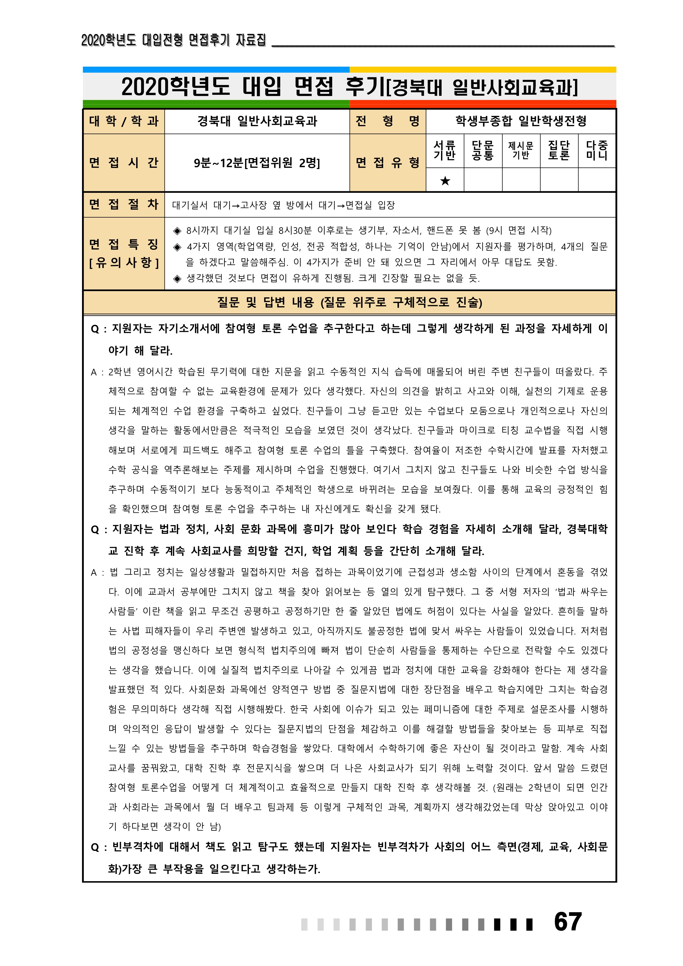 2021학년도 경북대학교 면접 후기90 - 일반사회교육과