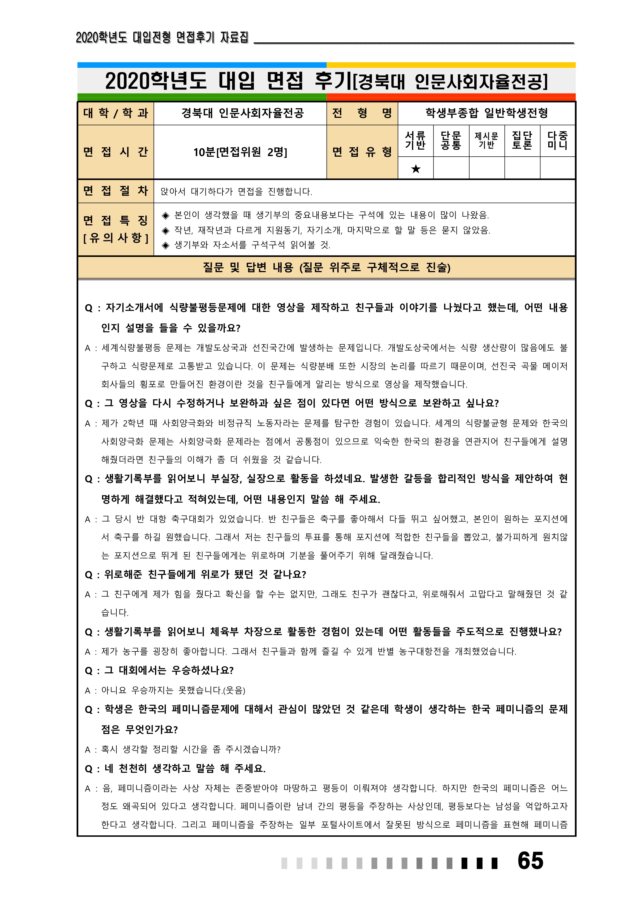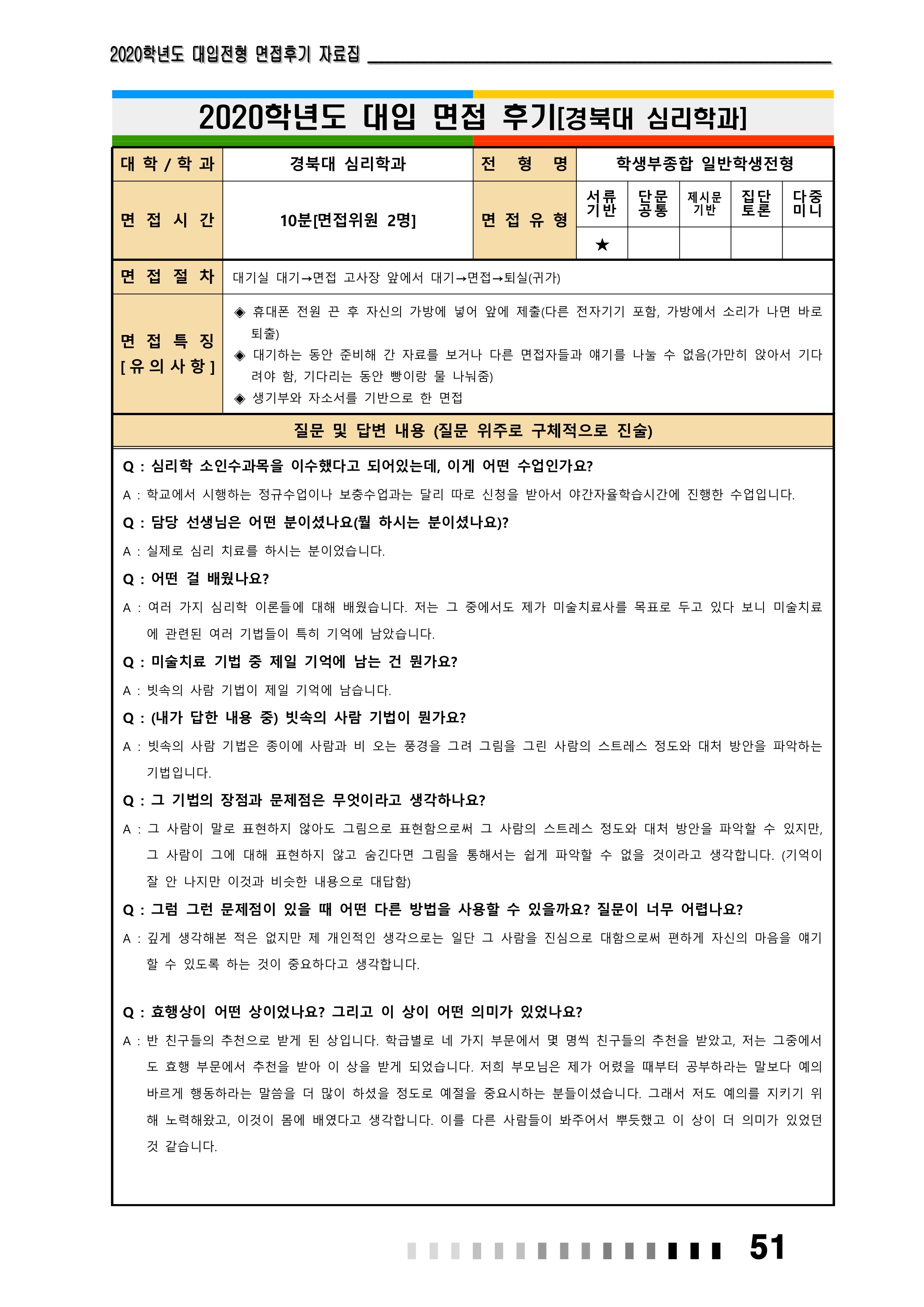 2021학년도 경북대학교 면접 후기64 - 심리학과