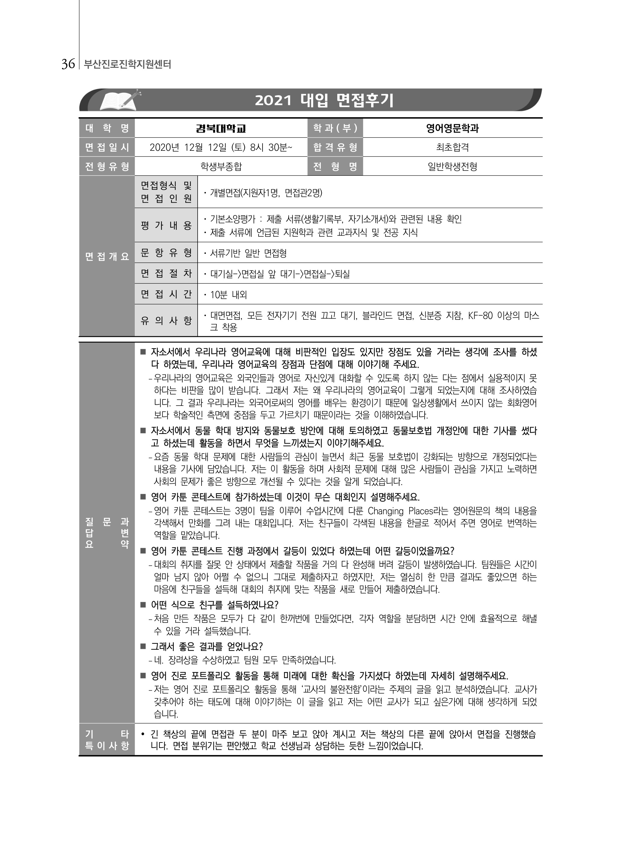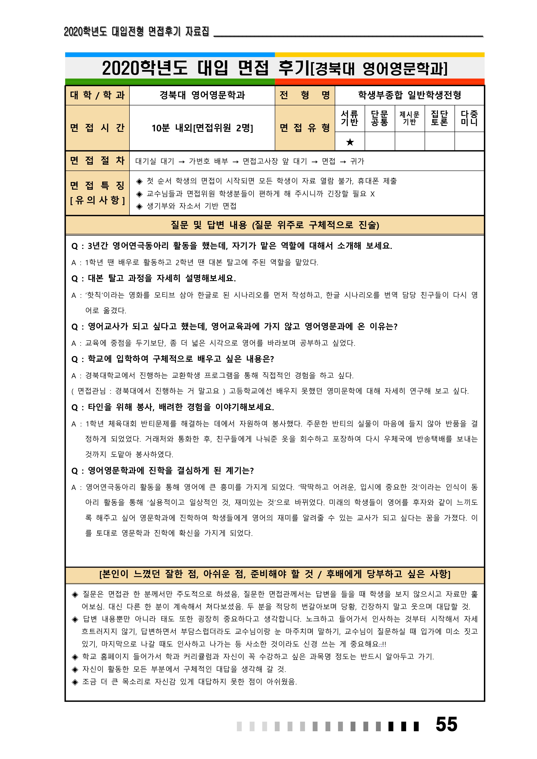 2021학년도 경북대학교 면접 후기67 - 영어영문학과 2021학년도 경북대학교 면접 후기68 - 영어영문학과