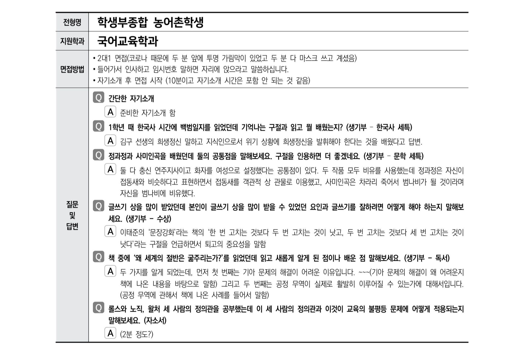 2021학년도 경북대학교 면접 후기73 - 원예과학과 2021학년도 경북대학교 면접 후기74 - 윤리교육과