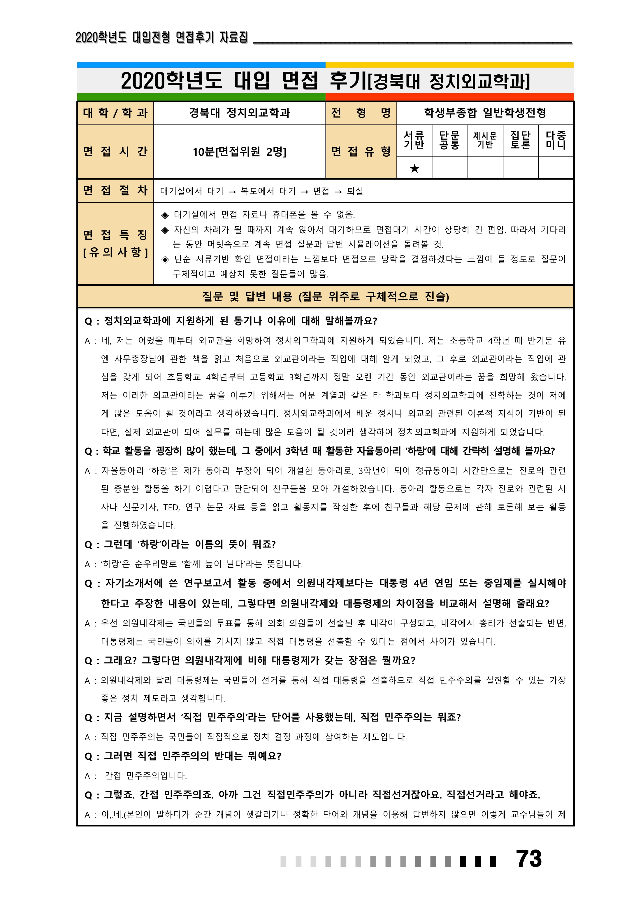 2021학년도 경북대학교 면접 후기106 - 정치외교학과