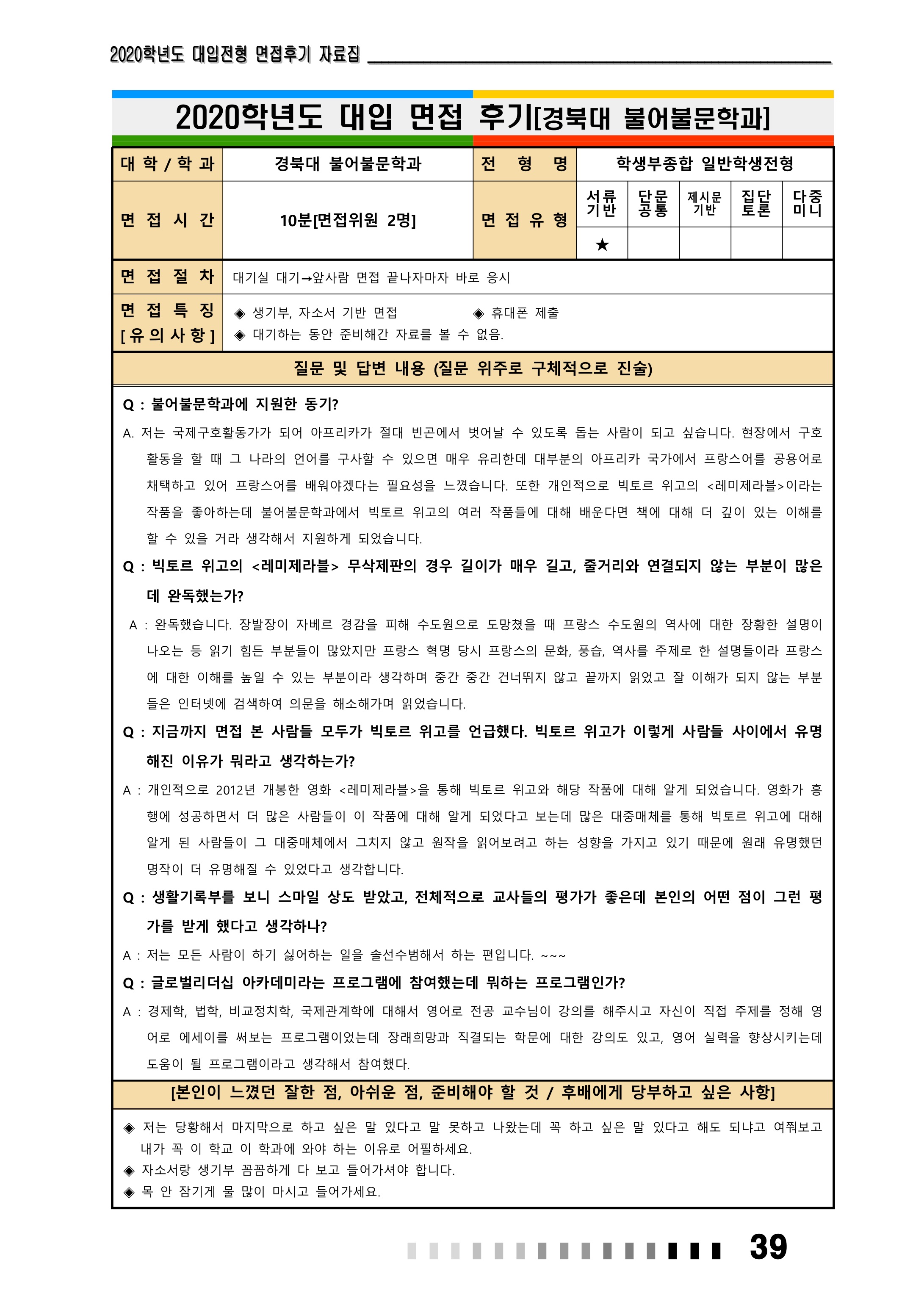 2021학년도 경북대학교 면접 후기122 - 통계학과 2021학년도 경북대학교 면접 후기122 - 한문학과