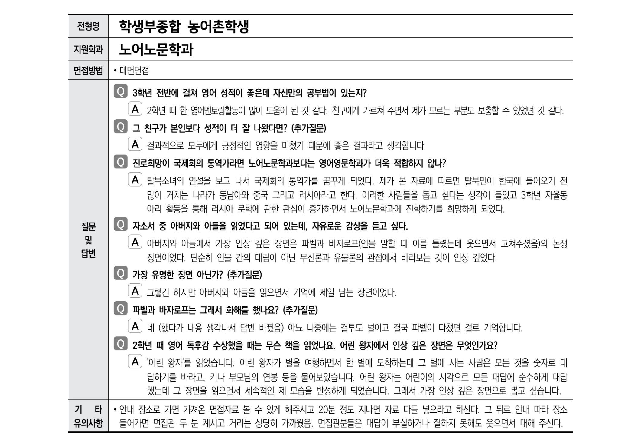- 영어를 배우는 게 더 나을 수도 있었는데 왜 굳이 노어노문학과를 지원한 이유를 자세하게 알려줄래요?