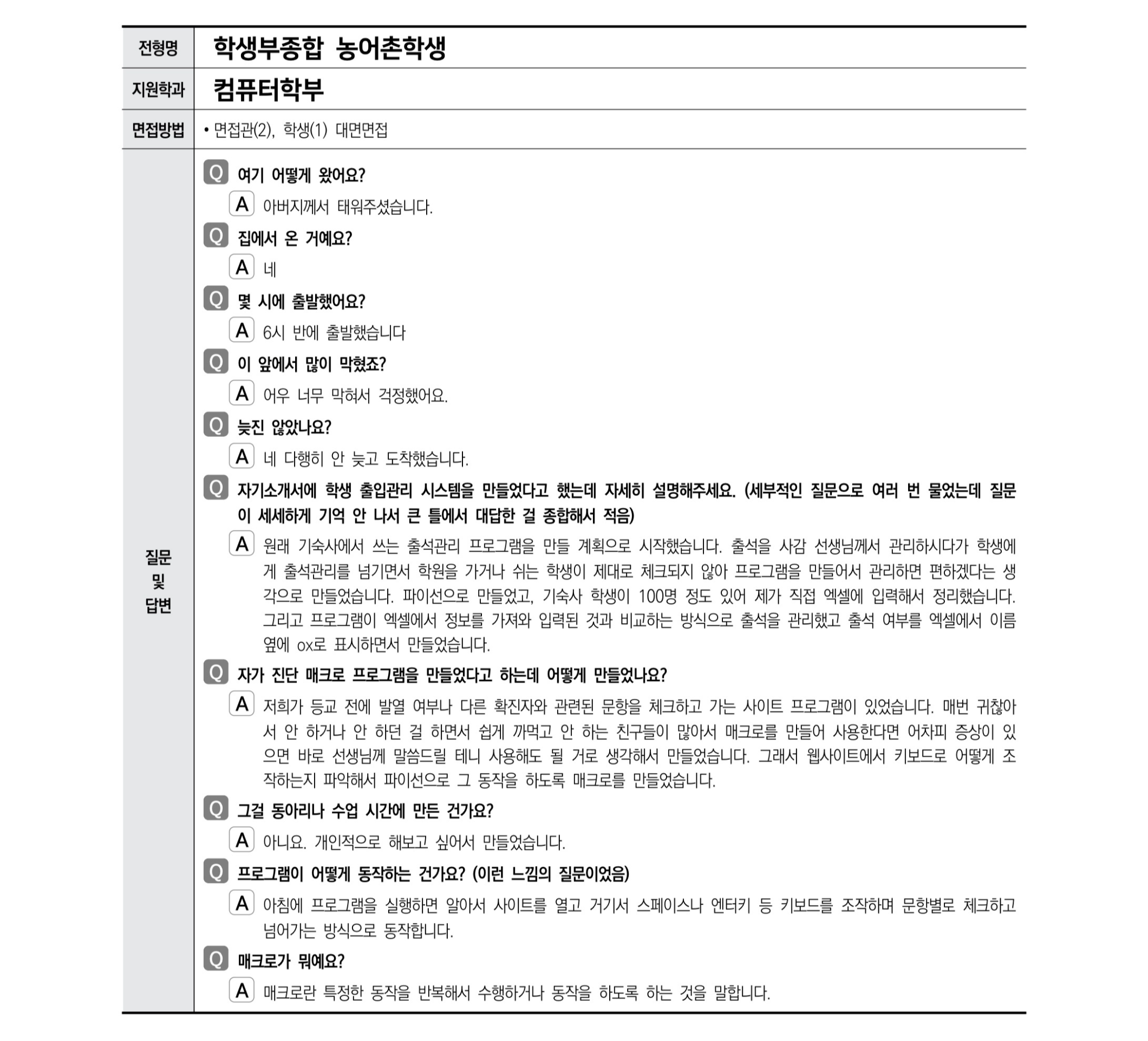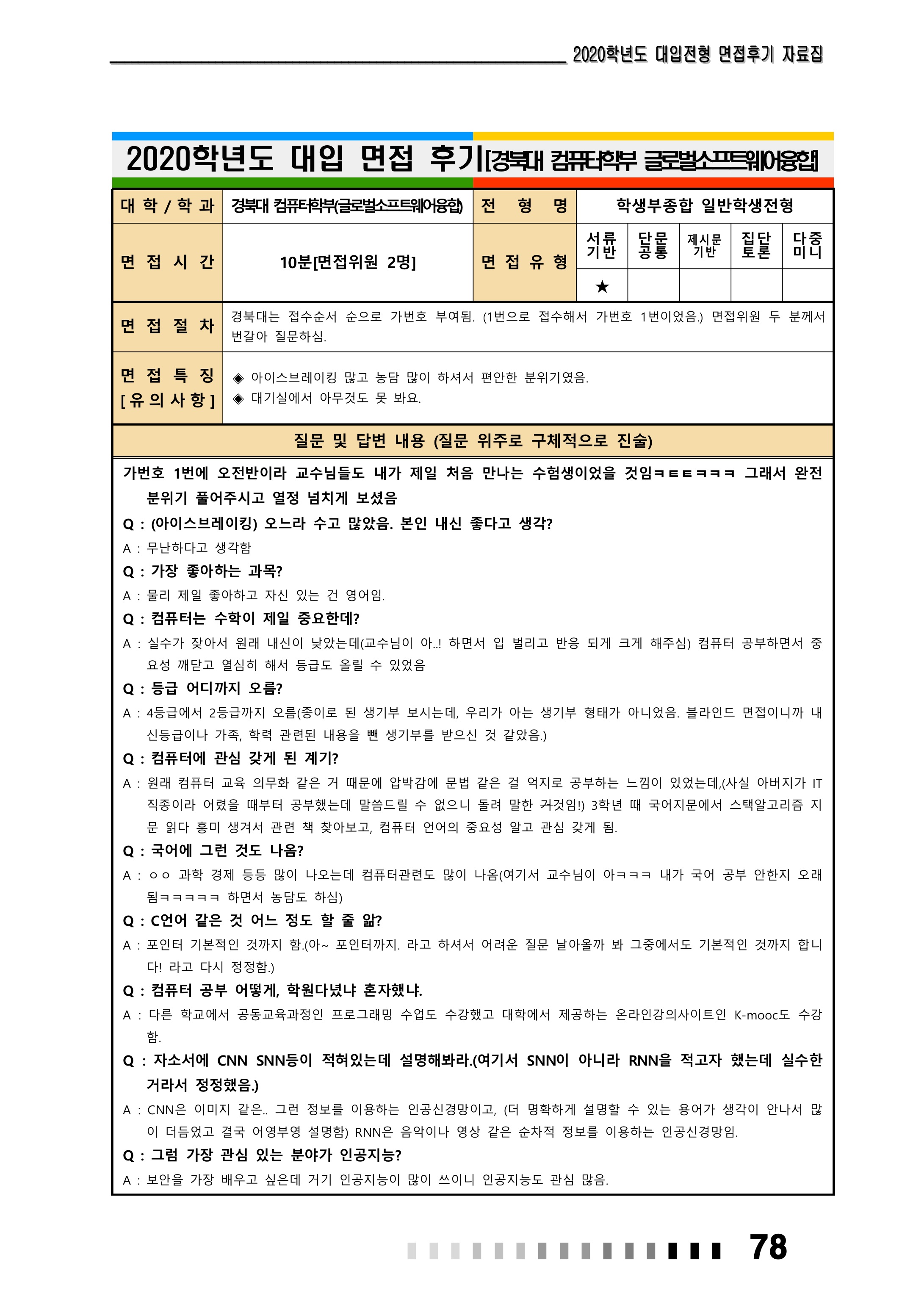 2021학년도 경북대학교 면접 후기114 - 컴퓨터학부