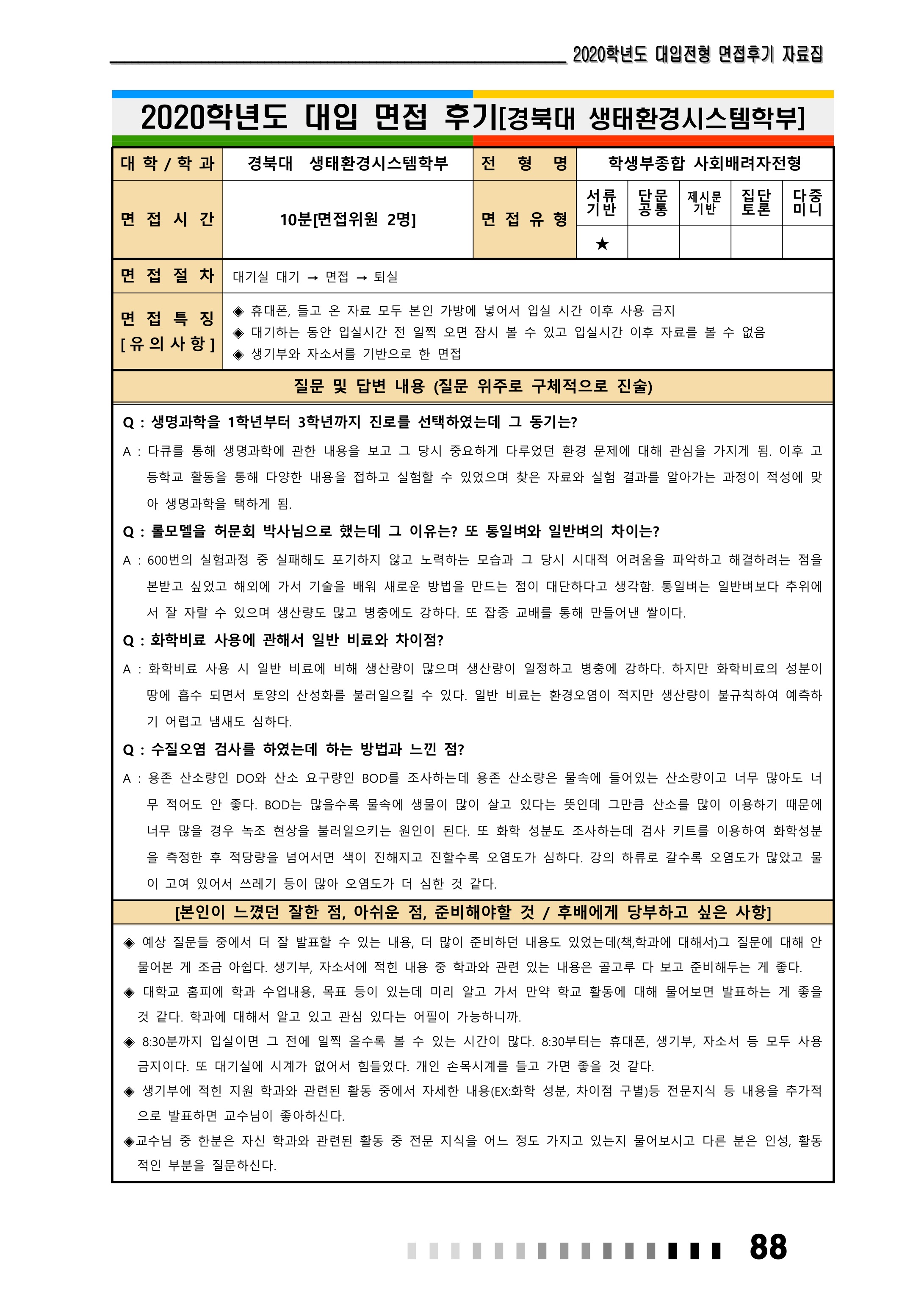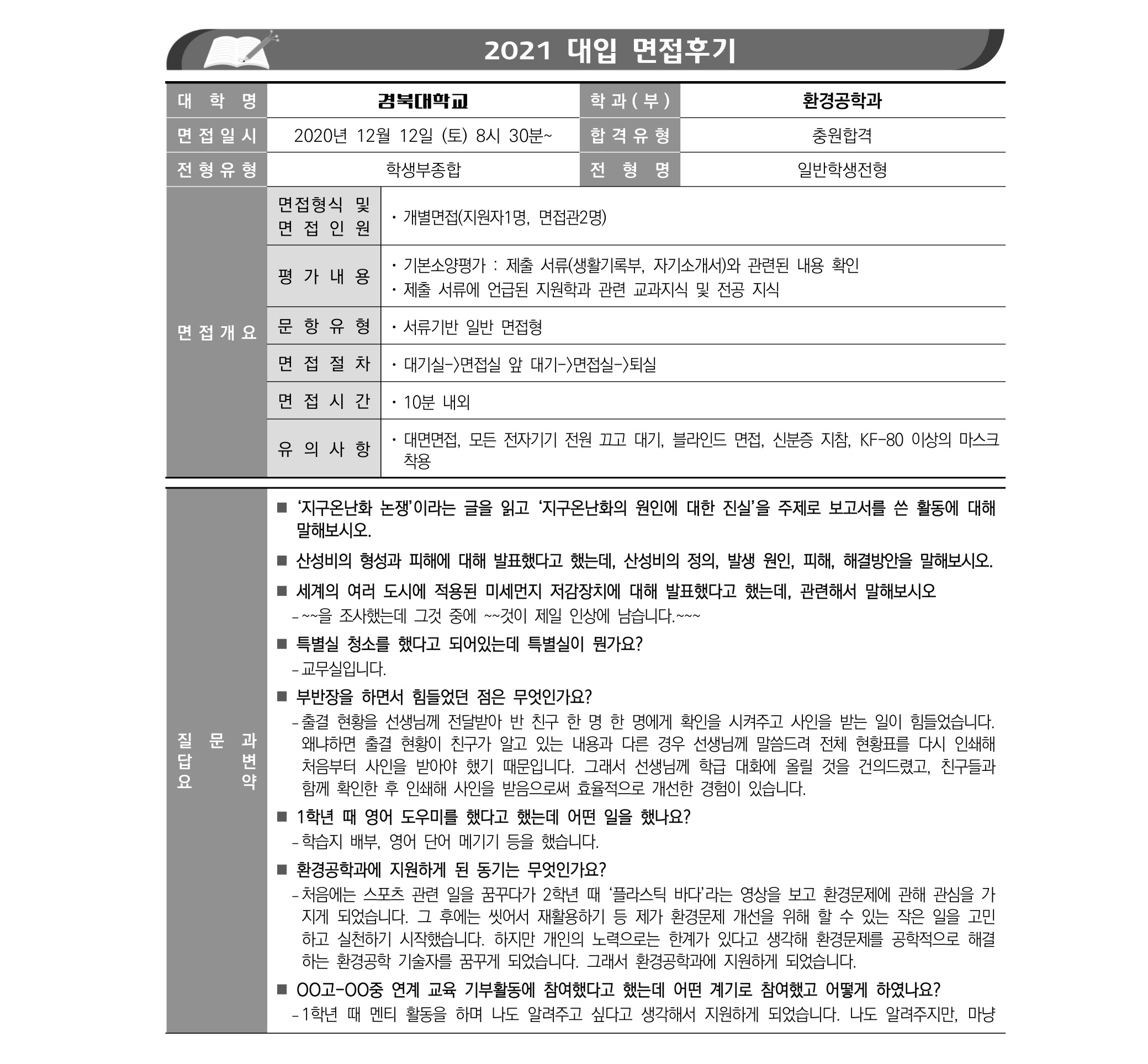2021학년도 경북대학교 면접 후기125 - 환경공학과