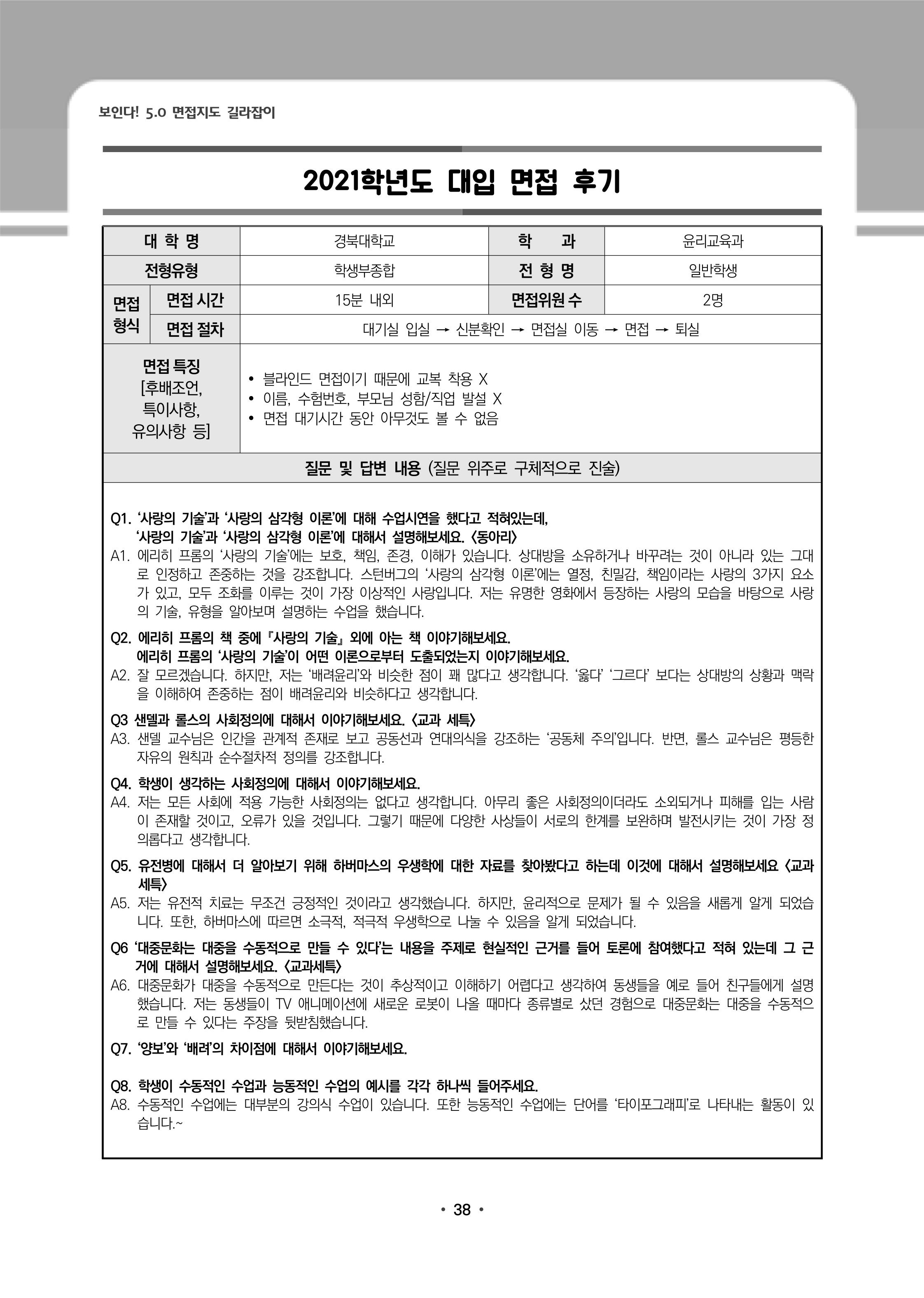 2021학년도 경북대학교 면접 후기75 - 윤리교육과 2021학년도 경북대학교 면접 후기76 - 윤리교육과