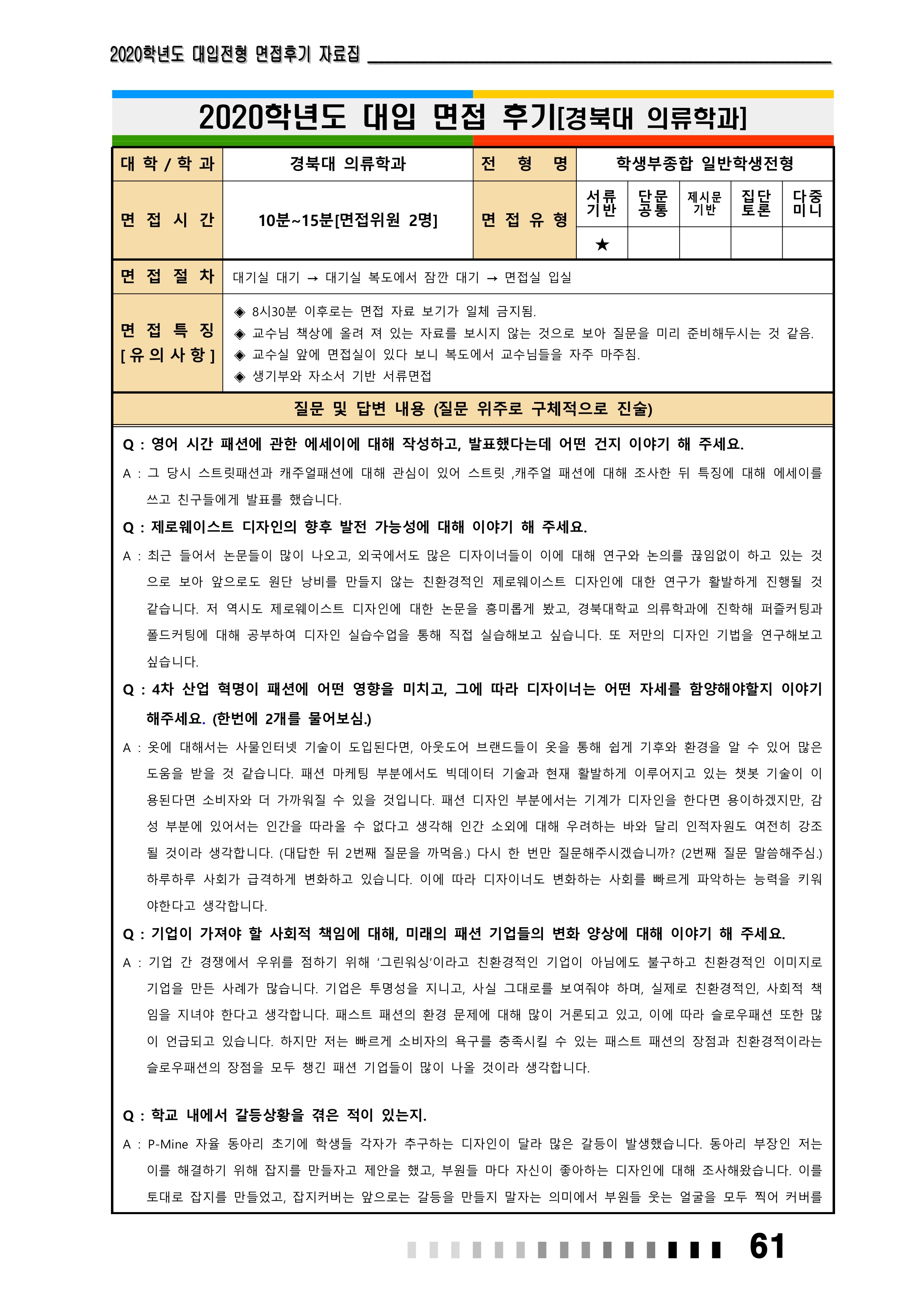 2021학년도 경북대학교 면접 후기84 - 의류학과