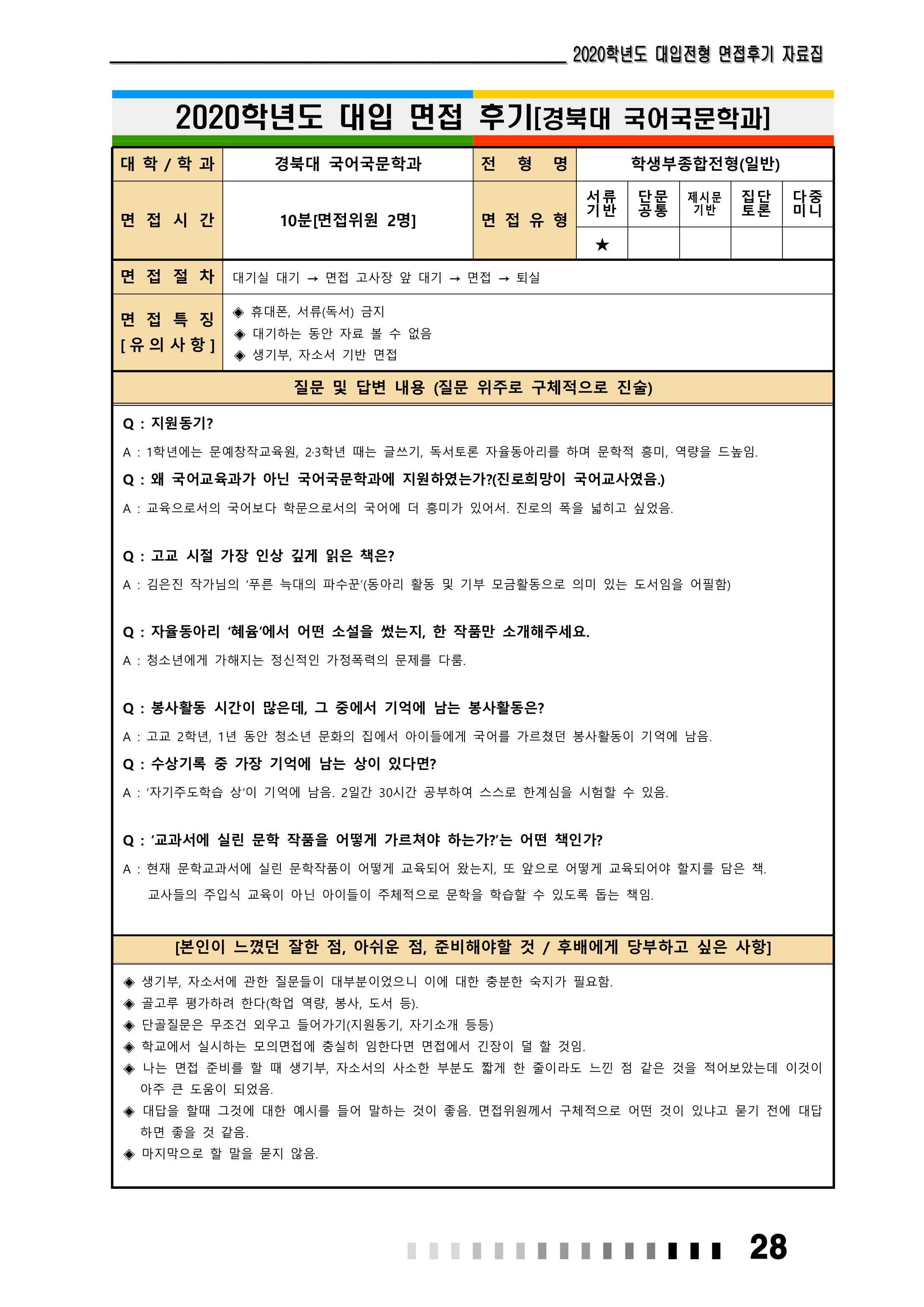 2021학년도 경북대학교 면접 후기111 - 축산학과 2021 경북대학교 축산학과 면접 질문1.jpg0.99MB2021학년도 경북대학교 면접 후기112 - 컴퓨터학부