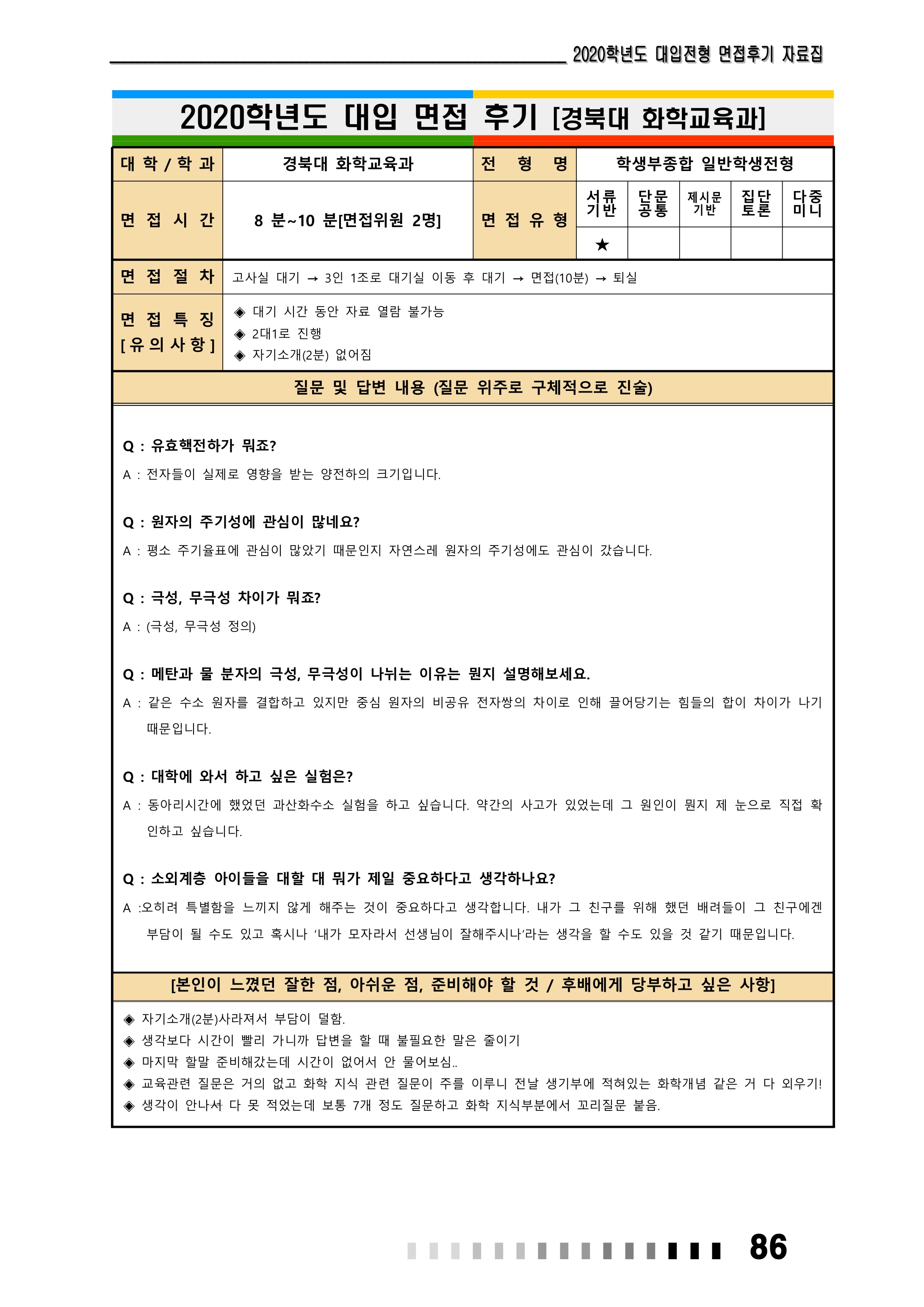 2021학년도 경북대학교 면접 후기124 - 화학과 2021학년도 경북대학교 면접 후기124 - 화학교육과