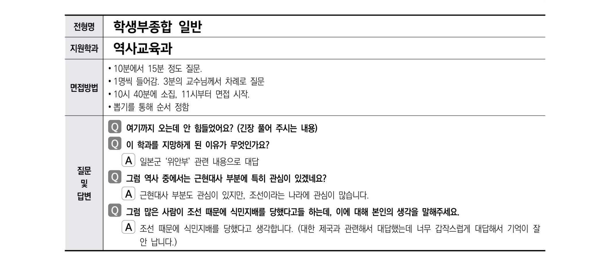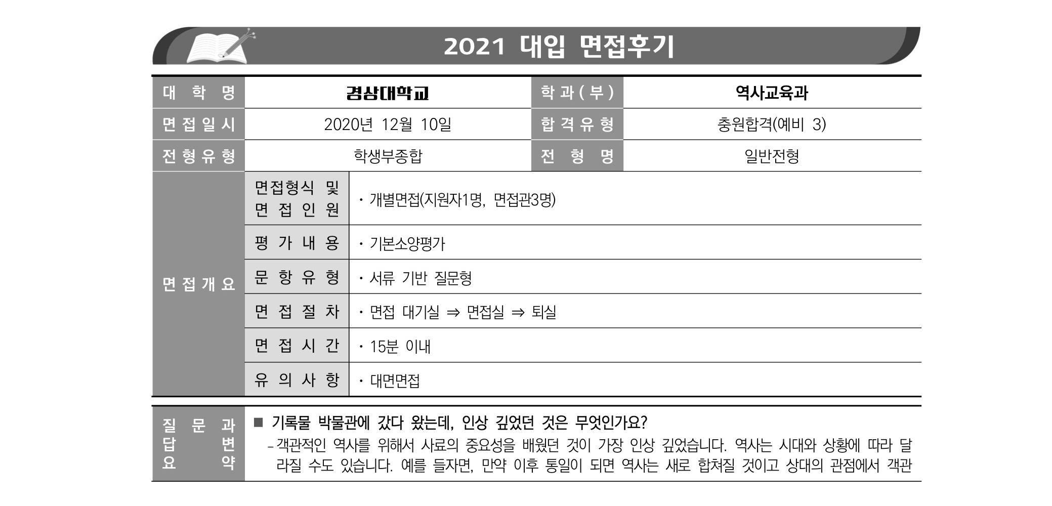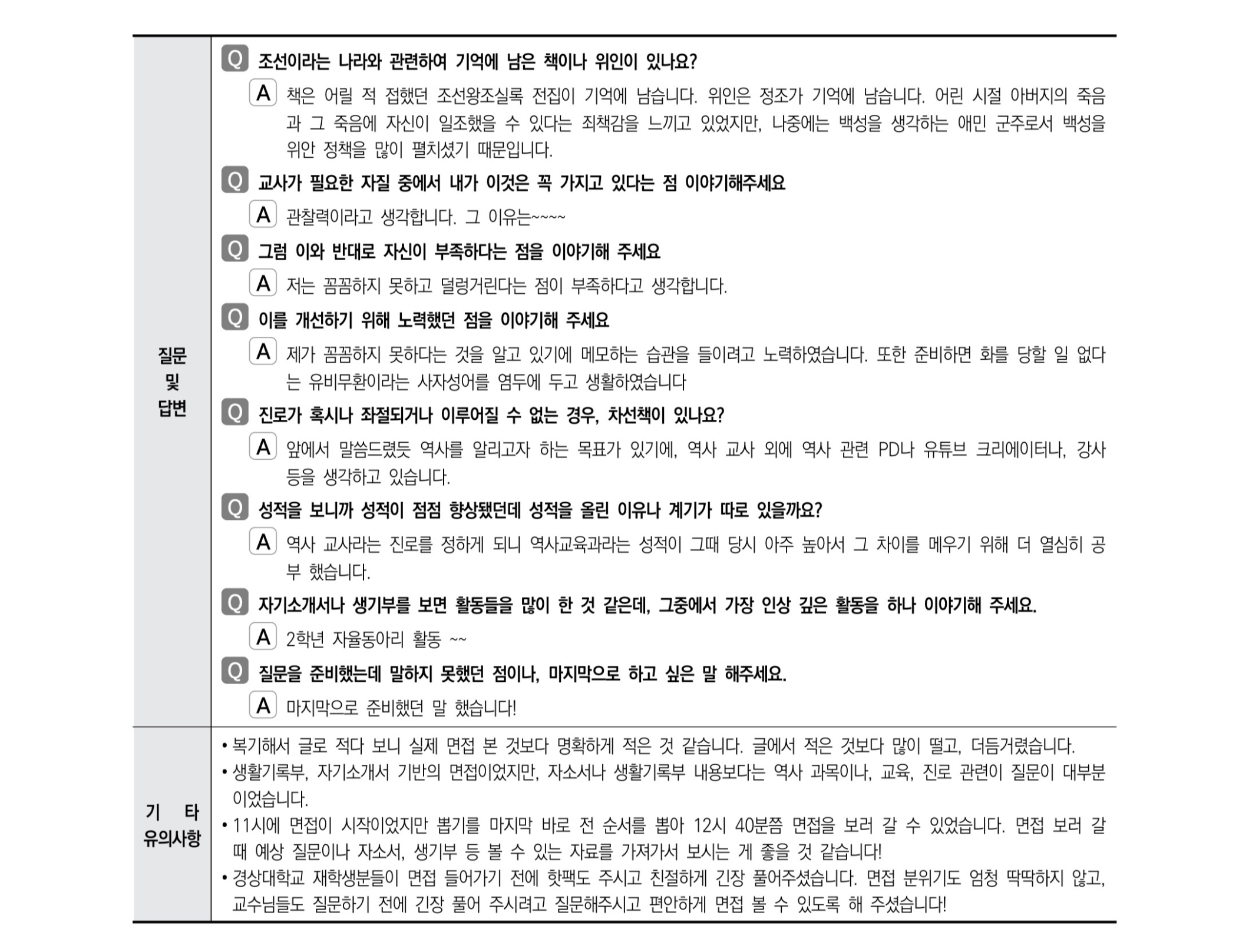 2021학년도 경상국립대학교 면접 후기21 - 역사교육과