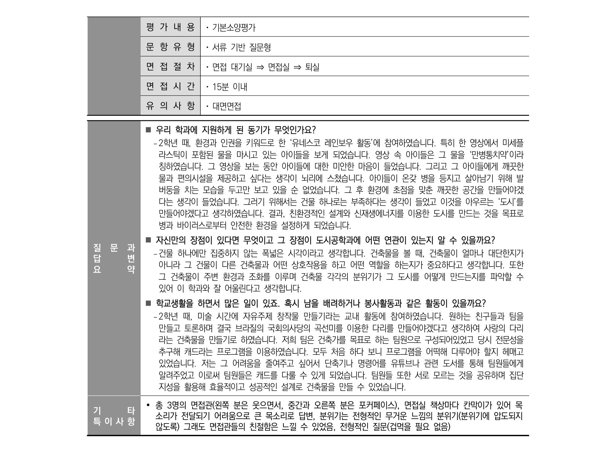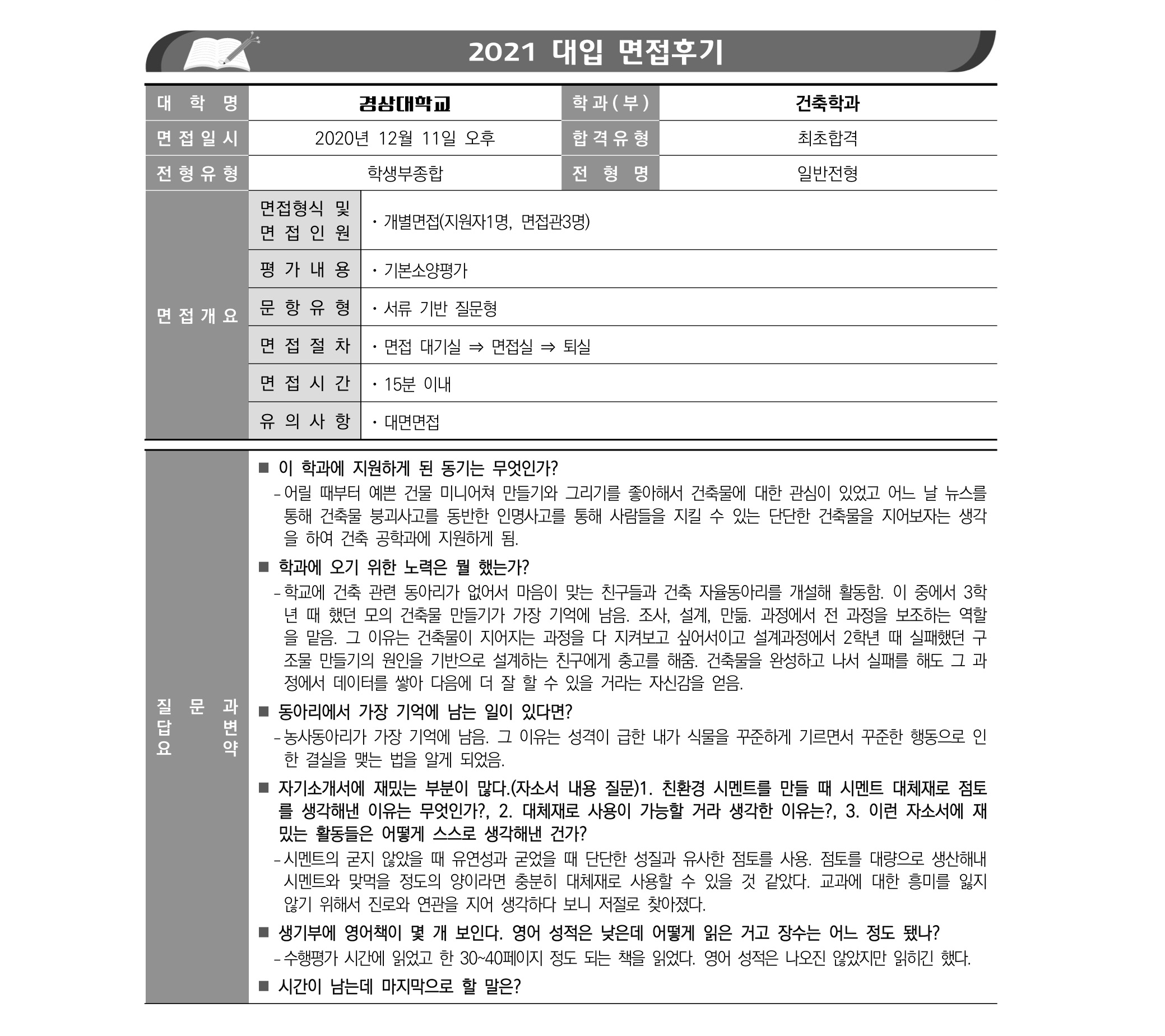 2021학년도 경상국립대학교 면접 후기2 - 건축학과