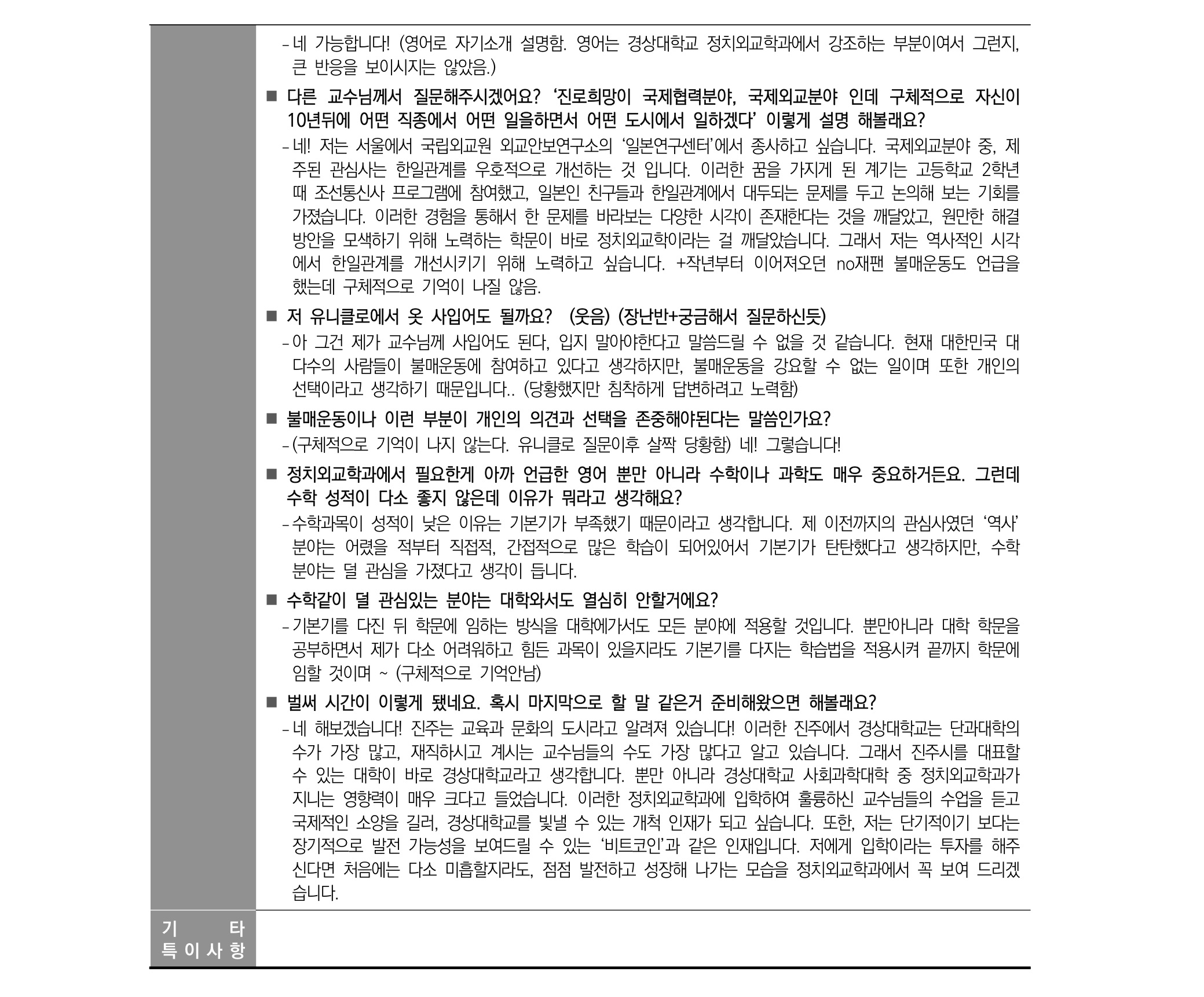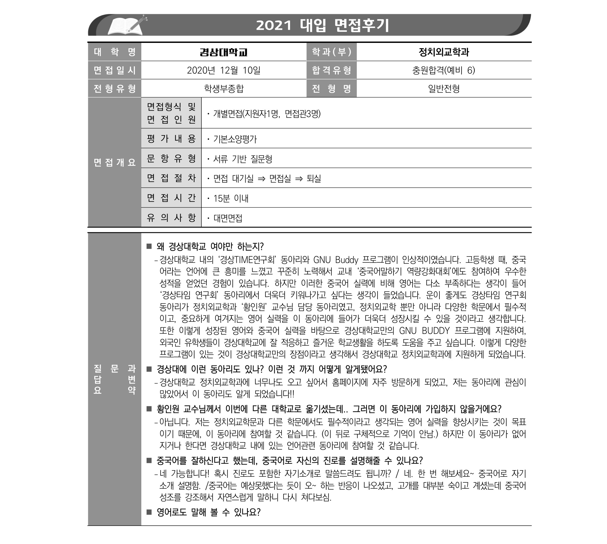 2021학년도 경상국립대학교 면접 후기24 - 정치외교학과
