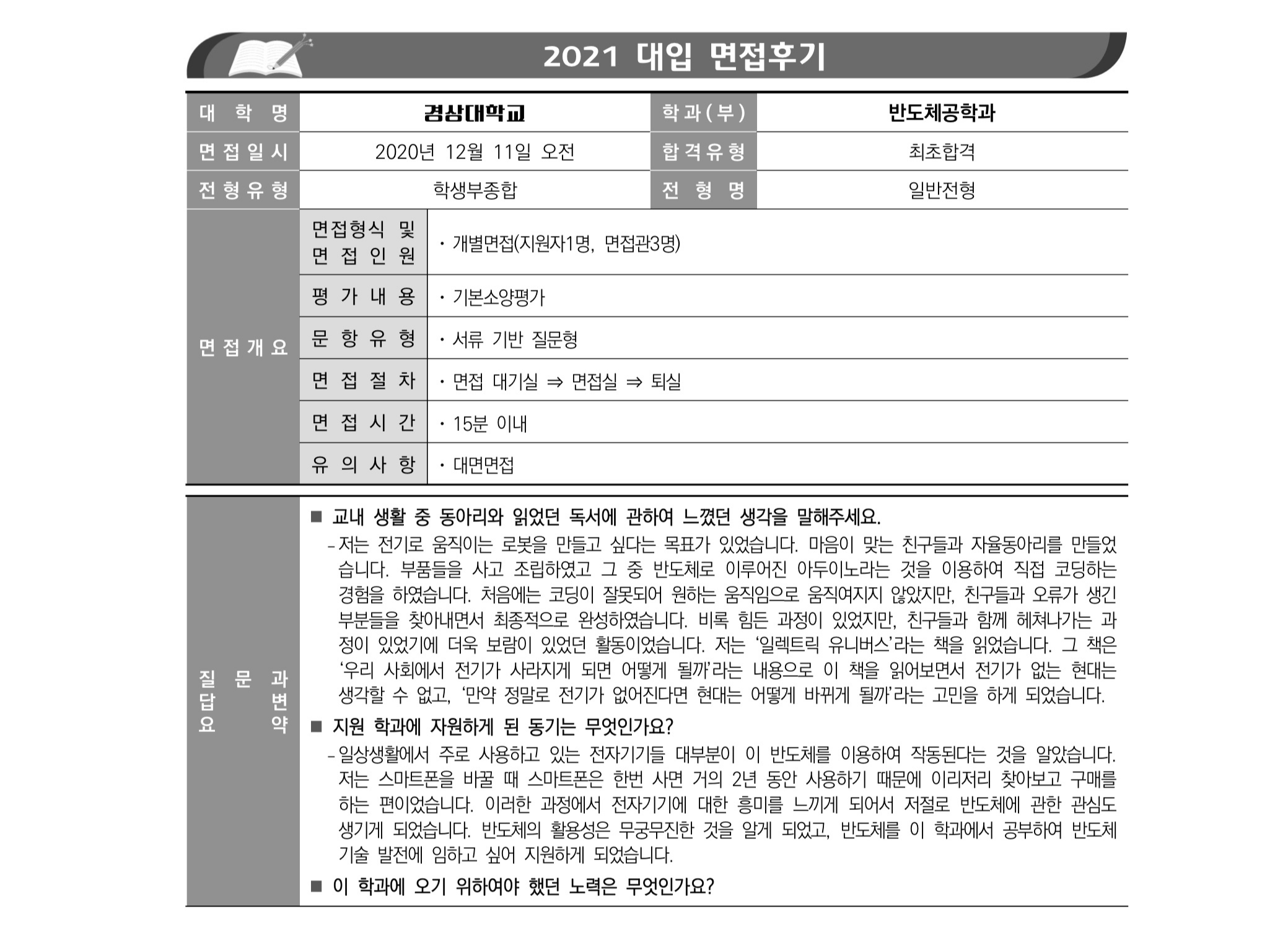 2021학년도 경상국립대학교 면접 후기11 - 반도체공학과 2021학년도 경상국립대학교 면접 후기12 - 반도체공학과