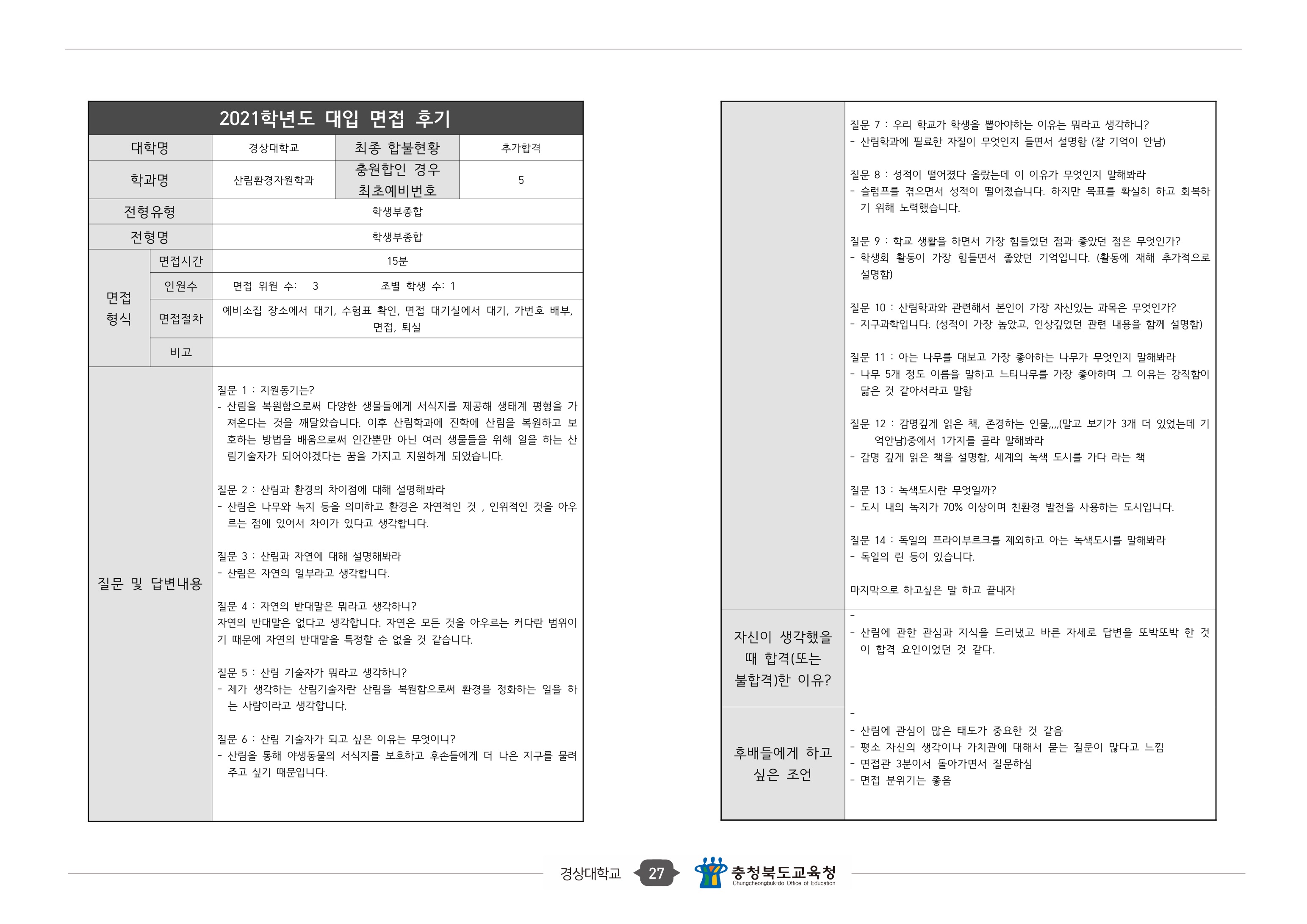 2021학년도 경상국립대학교 면접 후기13 - 반도체공학과 2021학년도 경상국립대학교 면접 후기14 - 산림환경자원학과