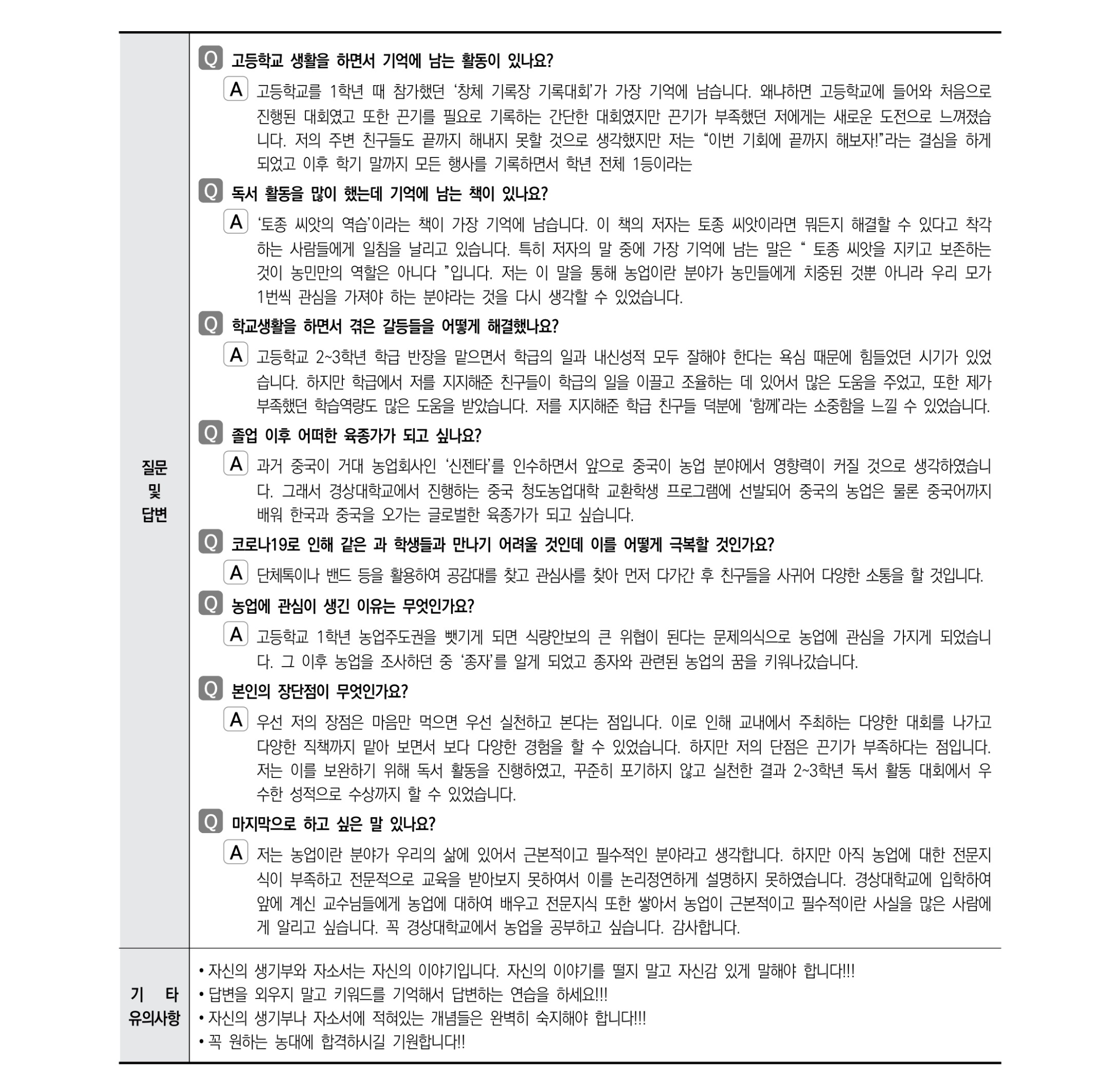 2021학년도 경상국립대학교 면접 후기7 - 농학과