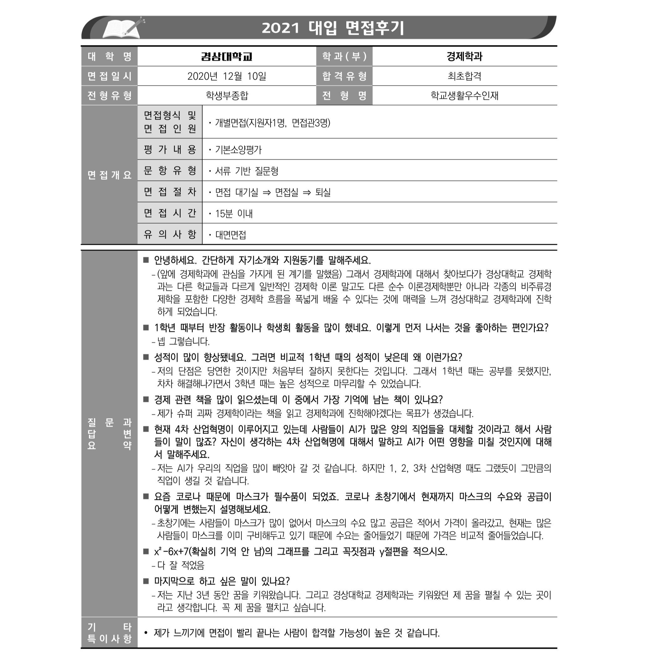 2021학년도 경상국립대학교 면접 후기3 - 경영정보학과 2021학년도 경상국립대학교 면접 후기4 - 경제학과