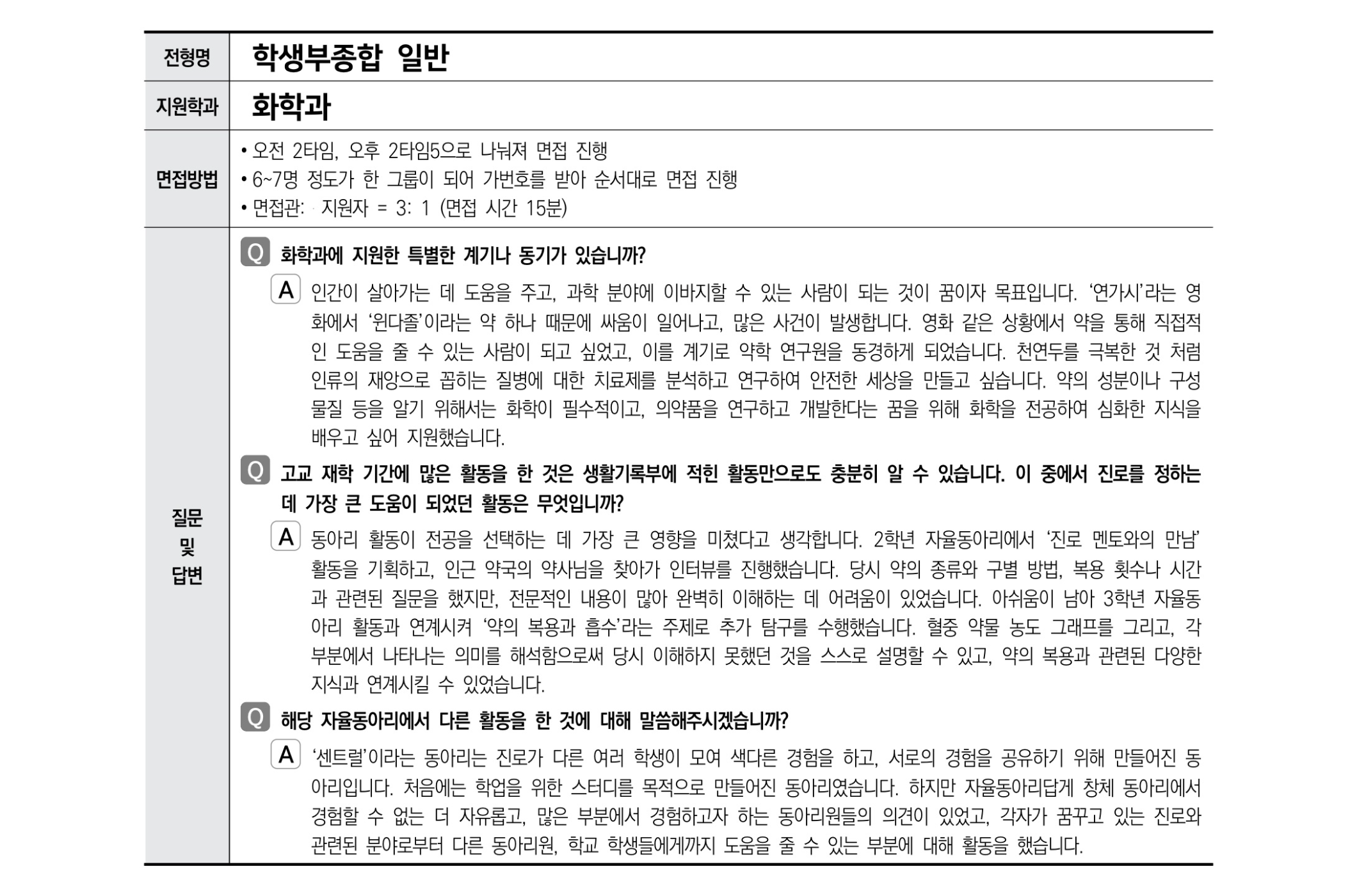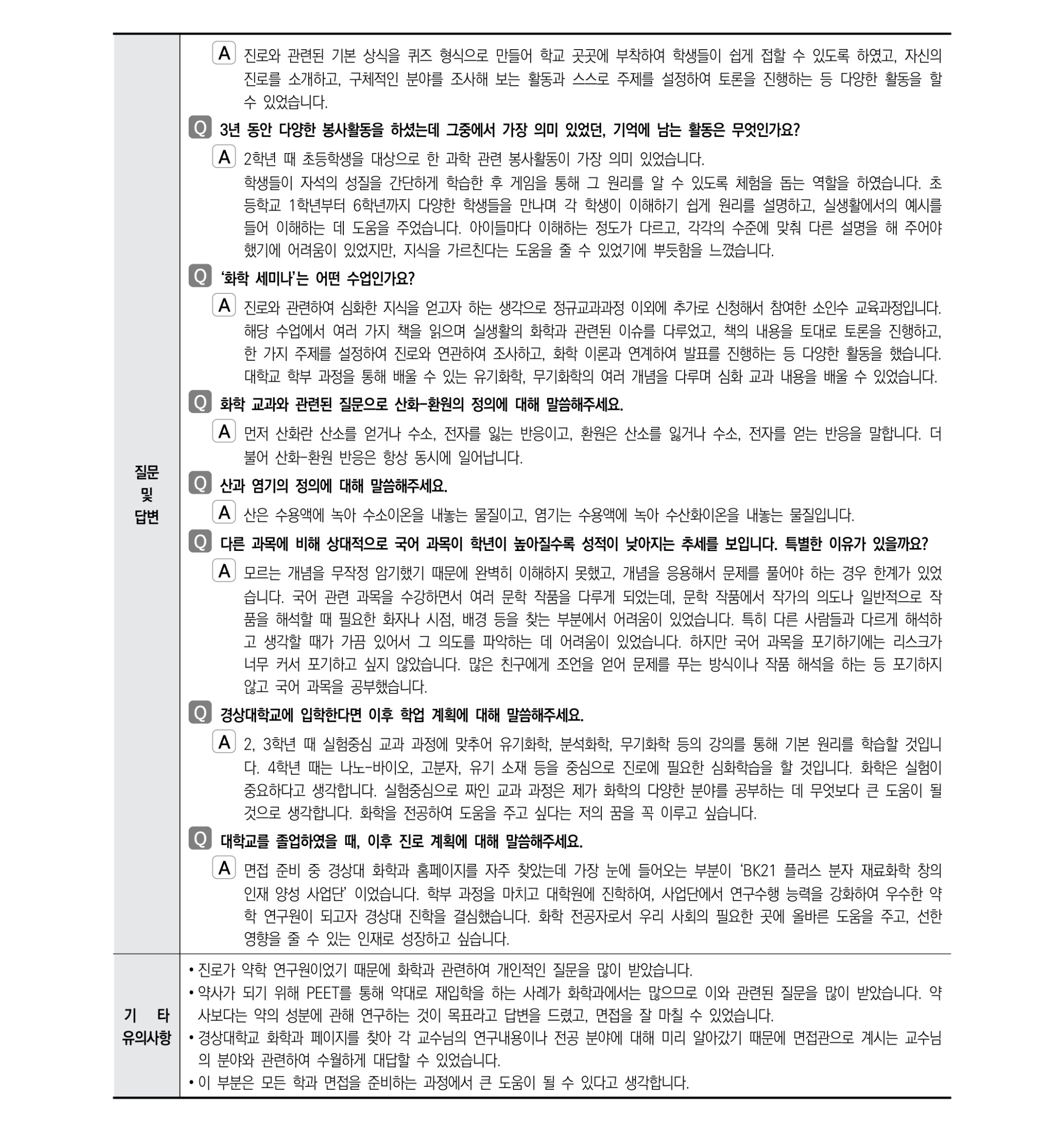 2021학년도 경상국립대학교 면접 후기31 - 화학과