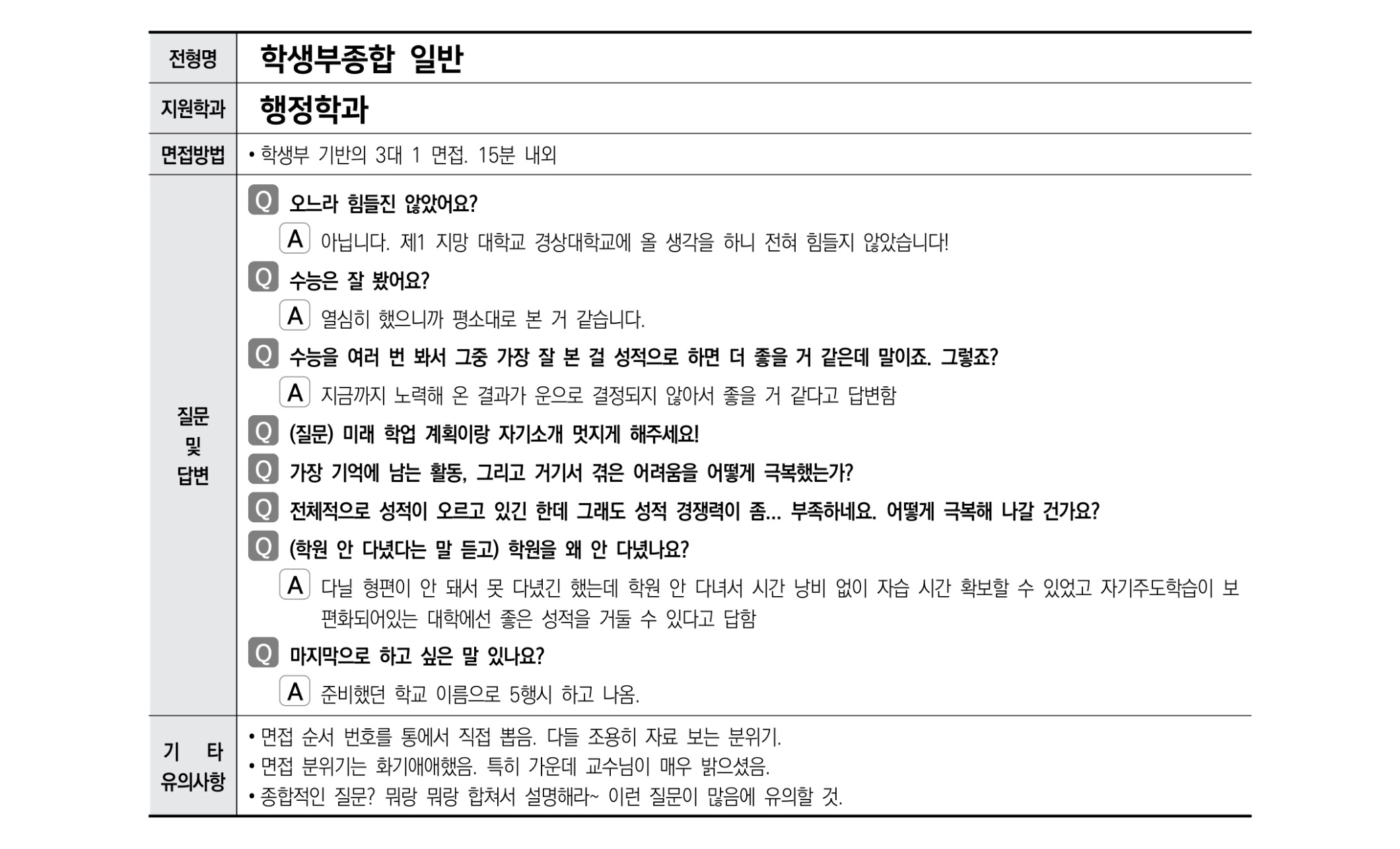 2021학년도 경상국립대학교 면접 후기29 - 행정학과 2021학년도 경상국립대학교 면접 후기30 - 화학공학과