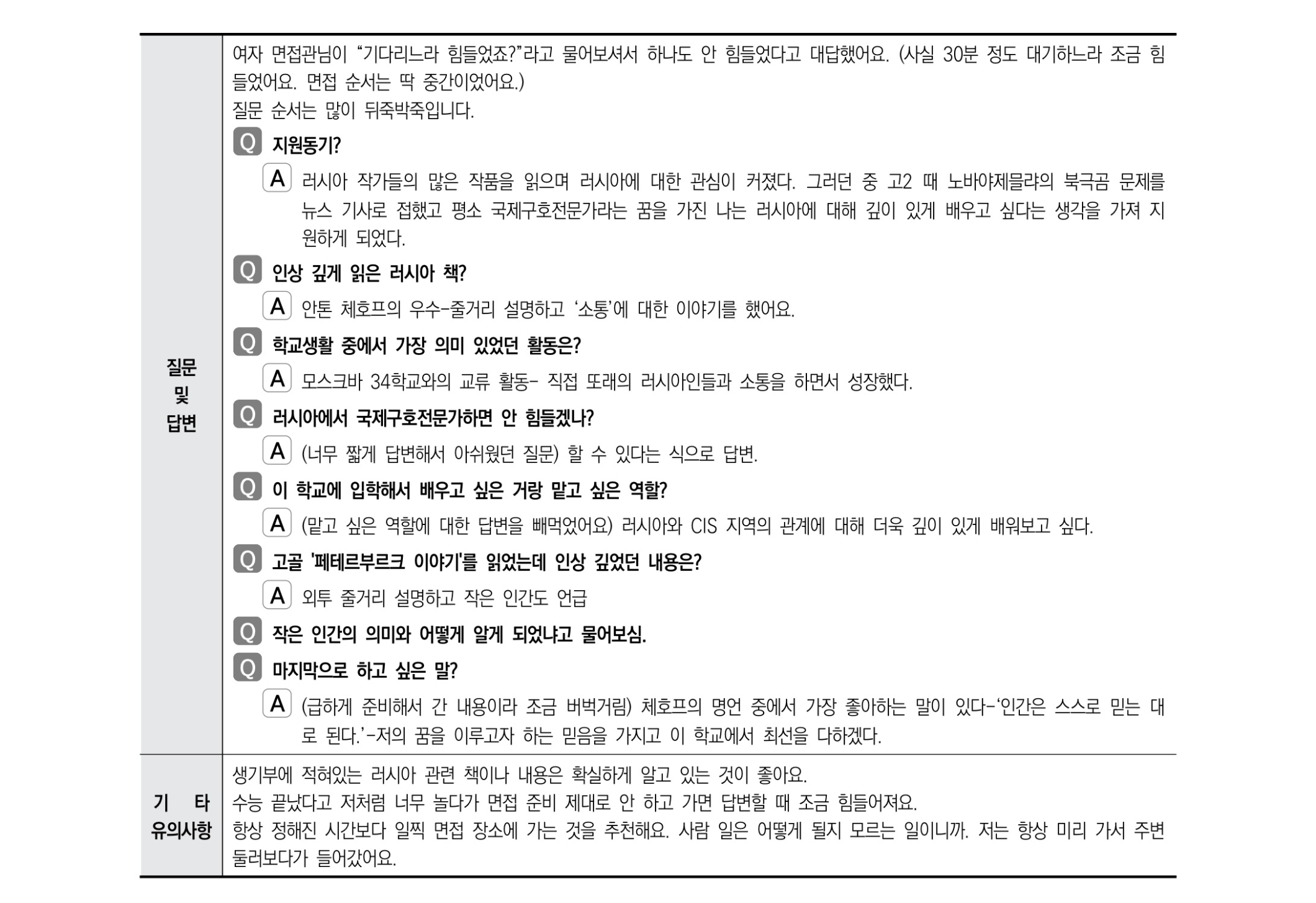 2021학년도 경상국립대학교 면접 후기10 - 러시아학과