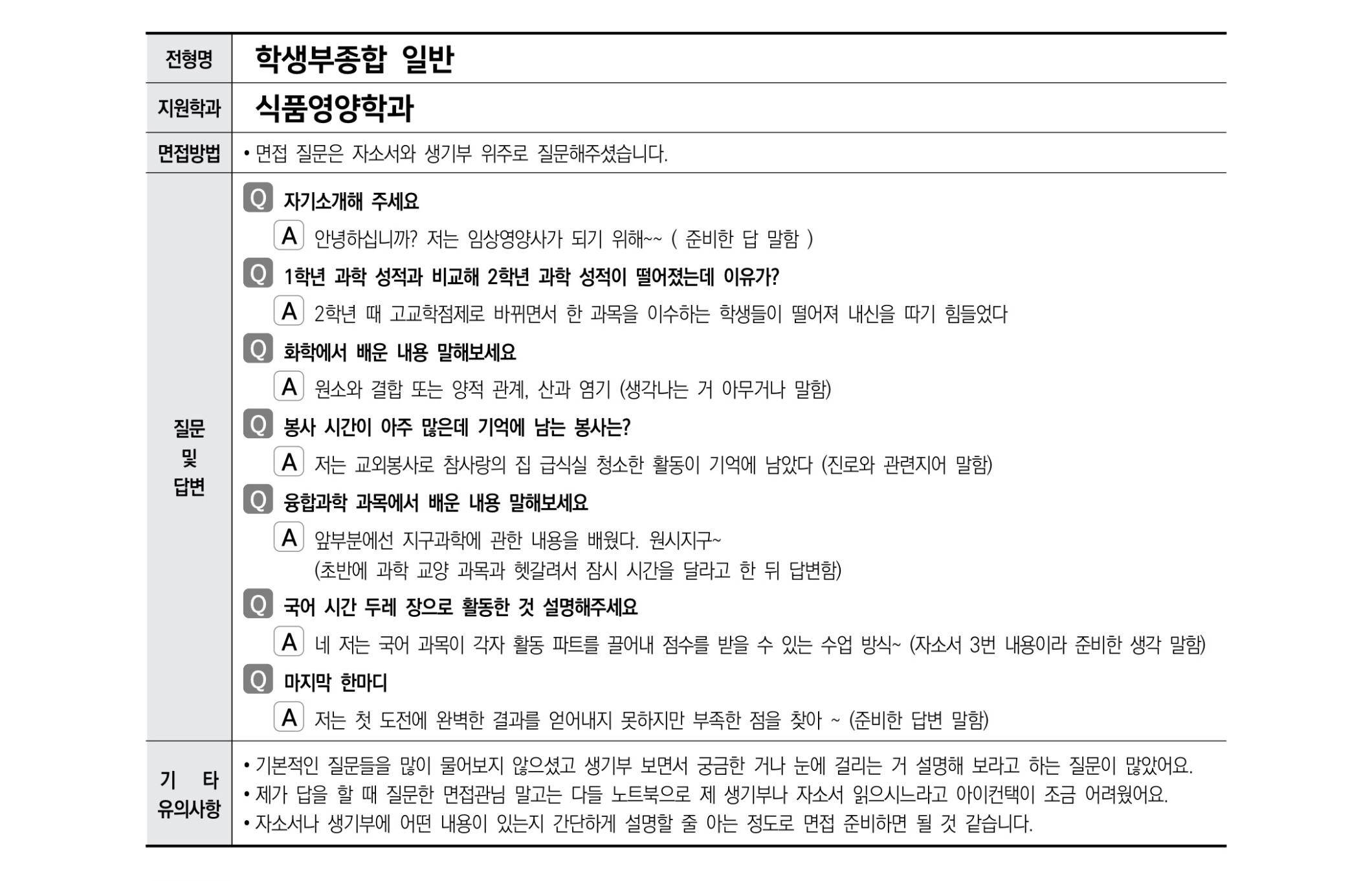 2021학년도 경상국립대학교 면접 후기16 - 식품영양학과 2021학년도 경상국립대학교 면접 후기17 - 심리학과