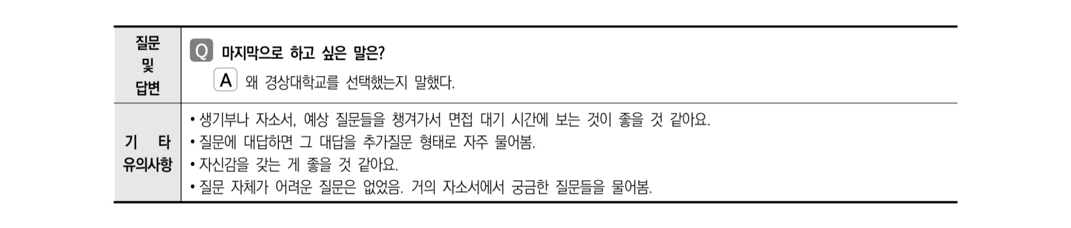 - 마지막으로 하고 싶은 말을 해보시오.경상국립대학교 간호학과