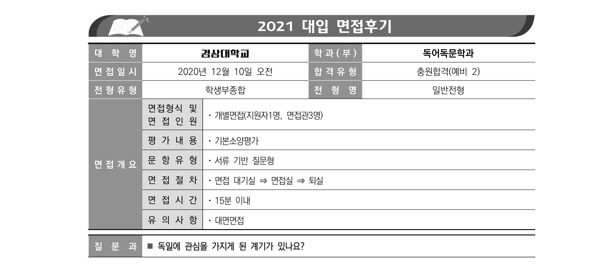 2021학년도 경상국립대학교 면접 후기9 - 독어독문학과