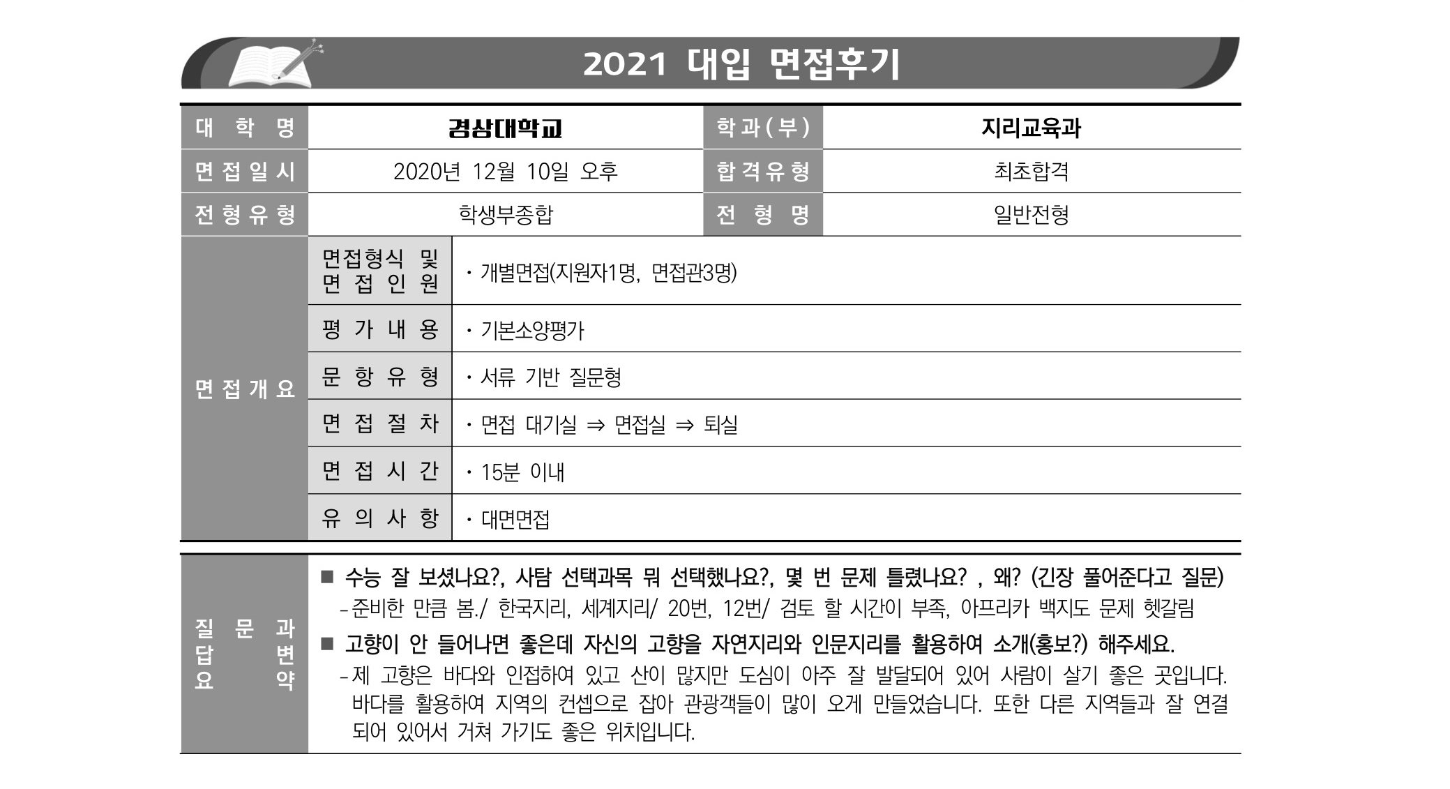 2021학년도 경상국립대학교 면접 후기27 - 지리교육과