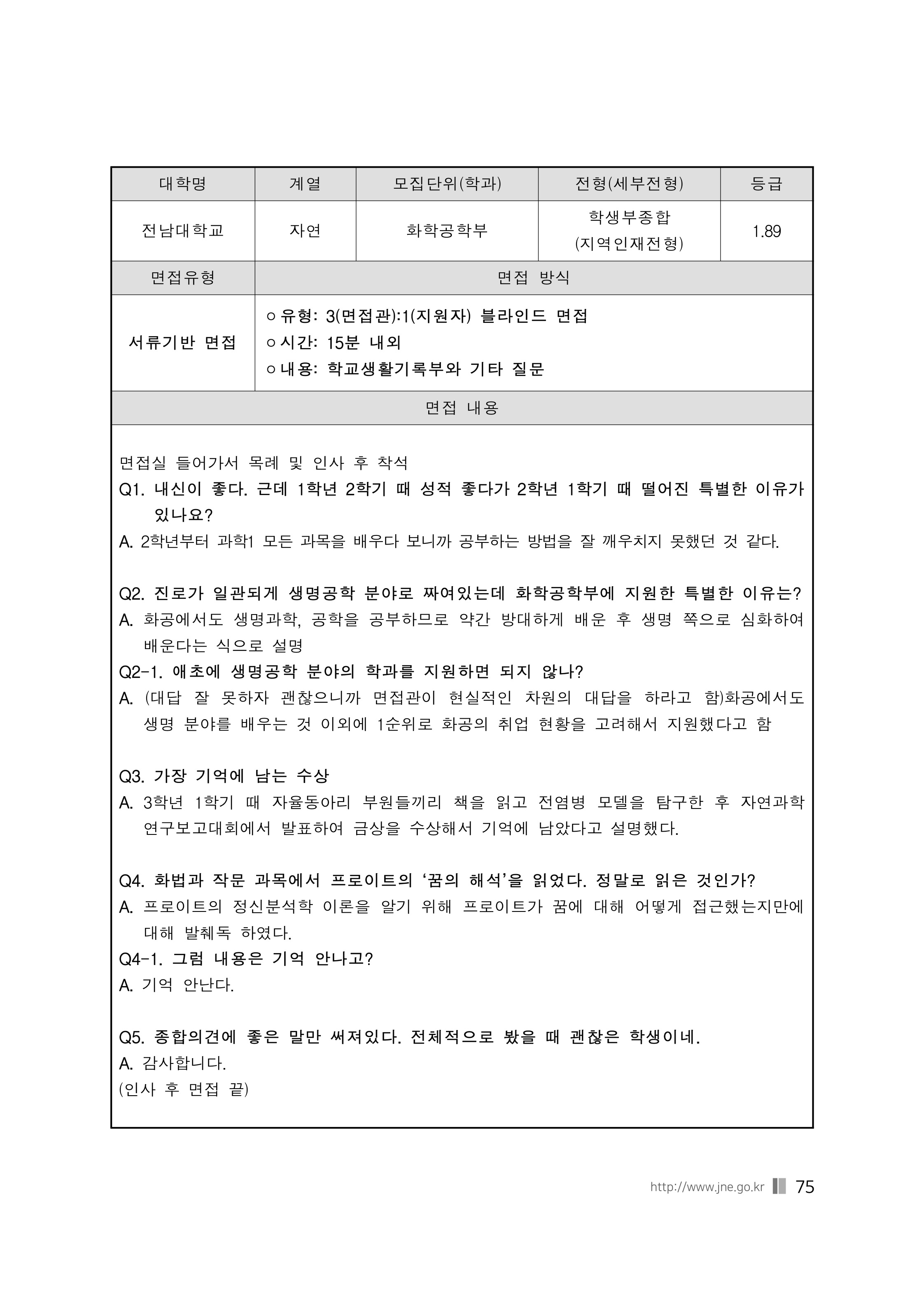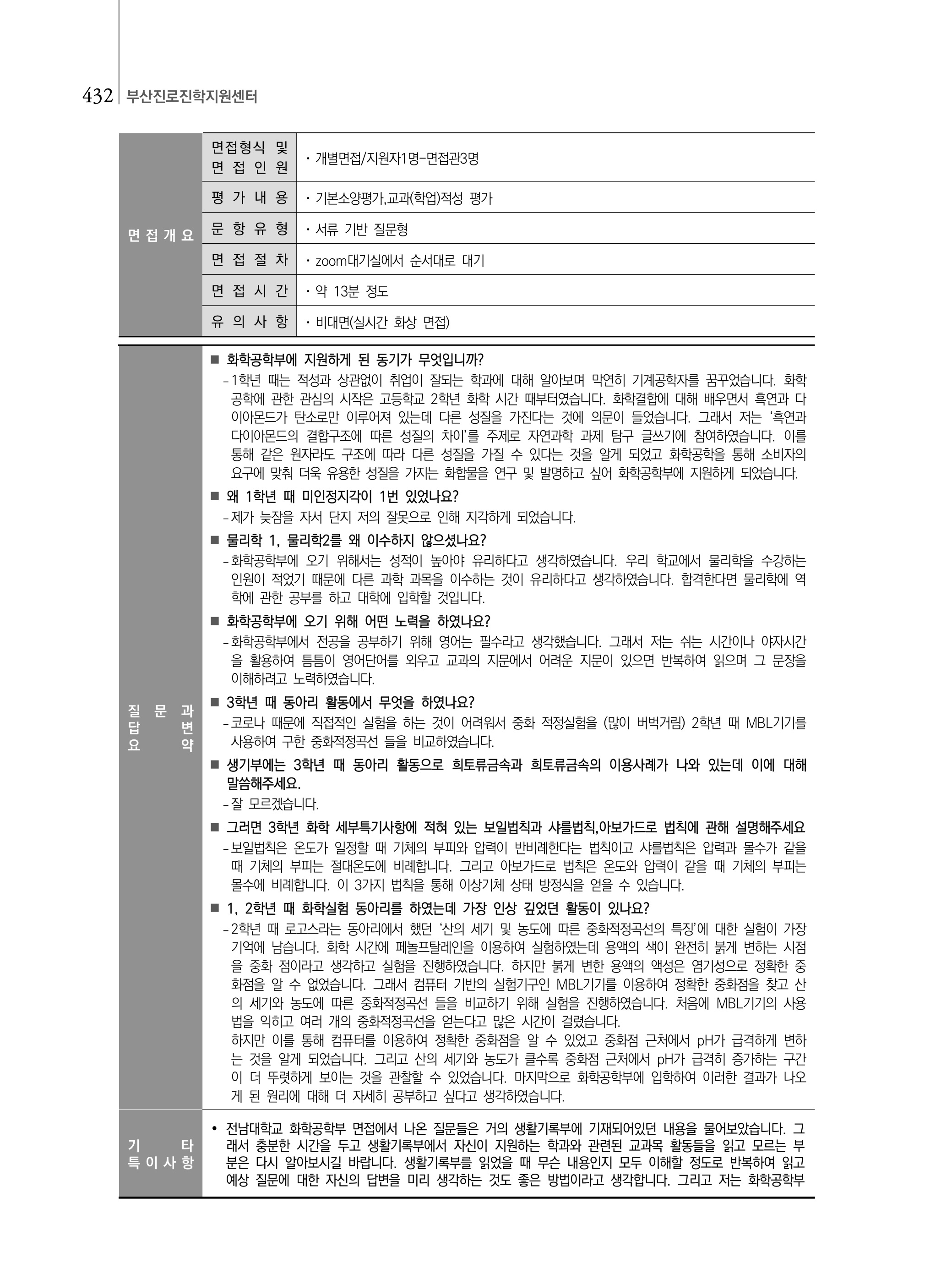 2021학년도 전남대학교 면접 후기19 - 화학공학부