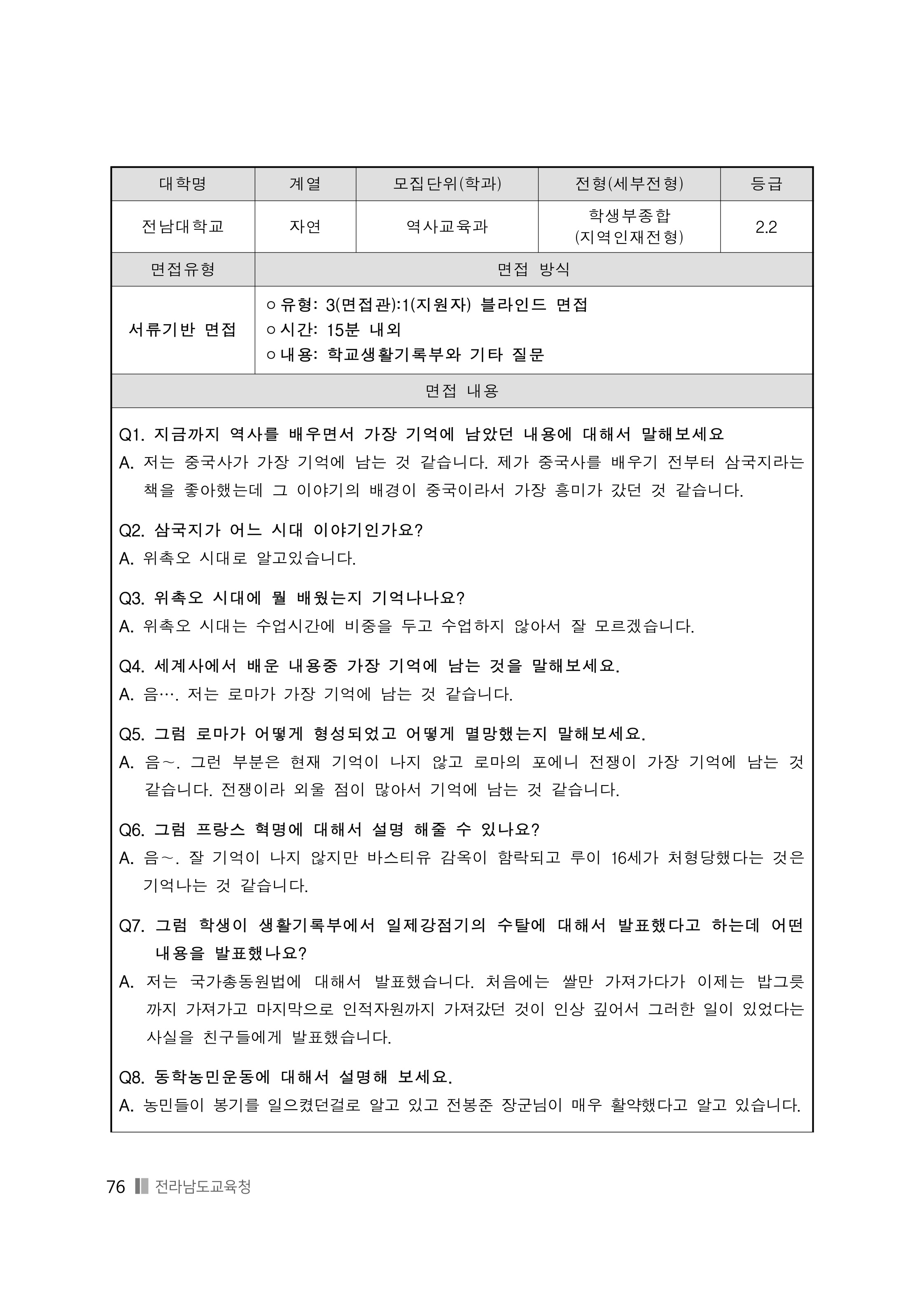 2021학년도 전남대학교 면접 후기8 - 역사교육과