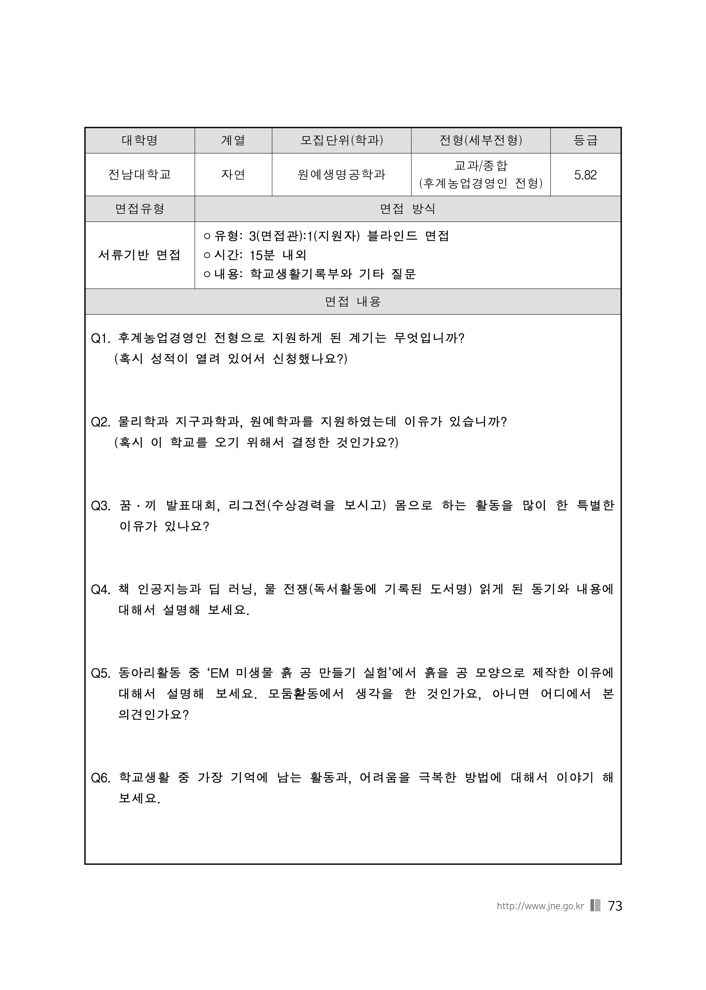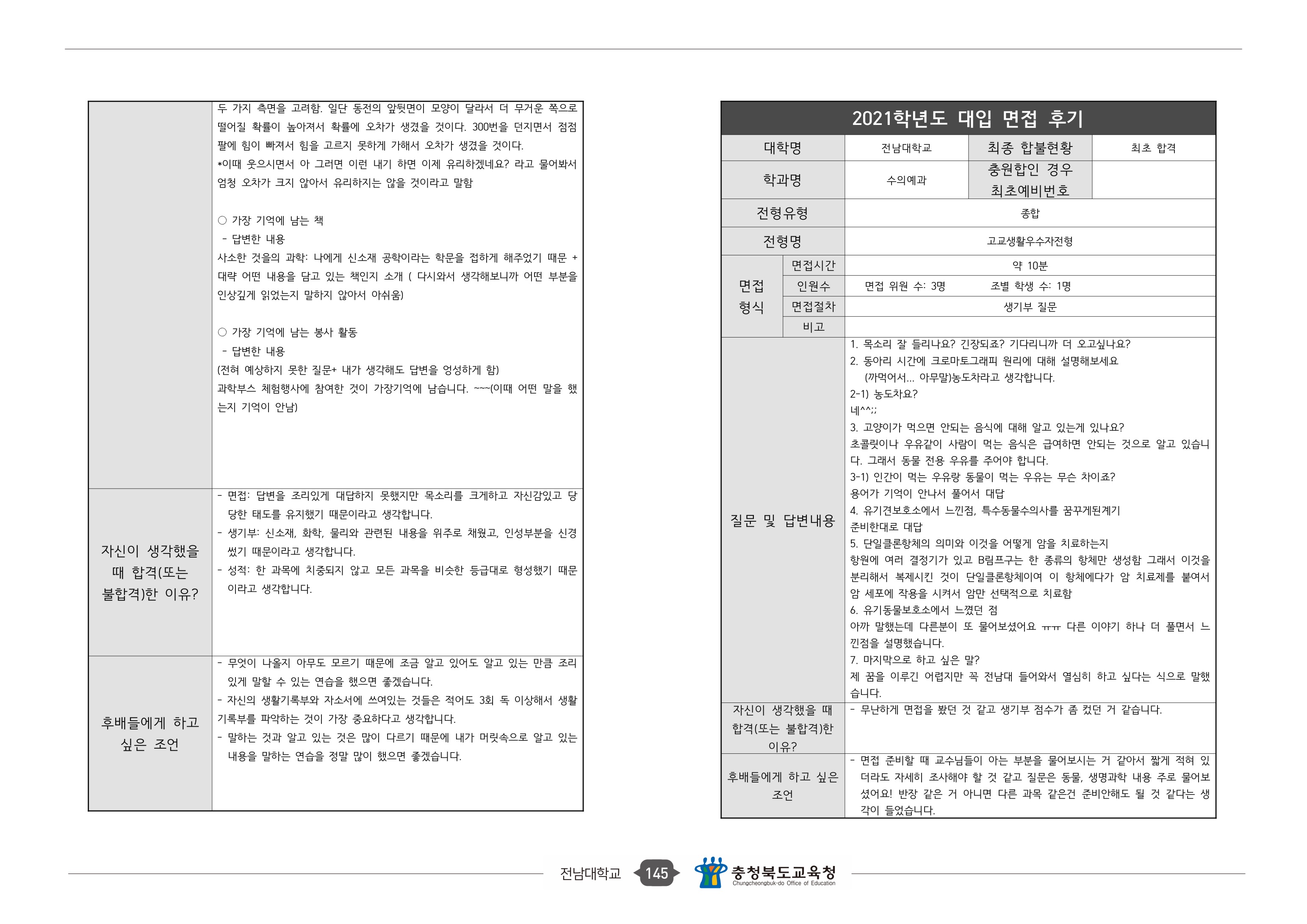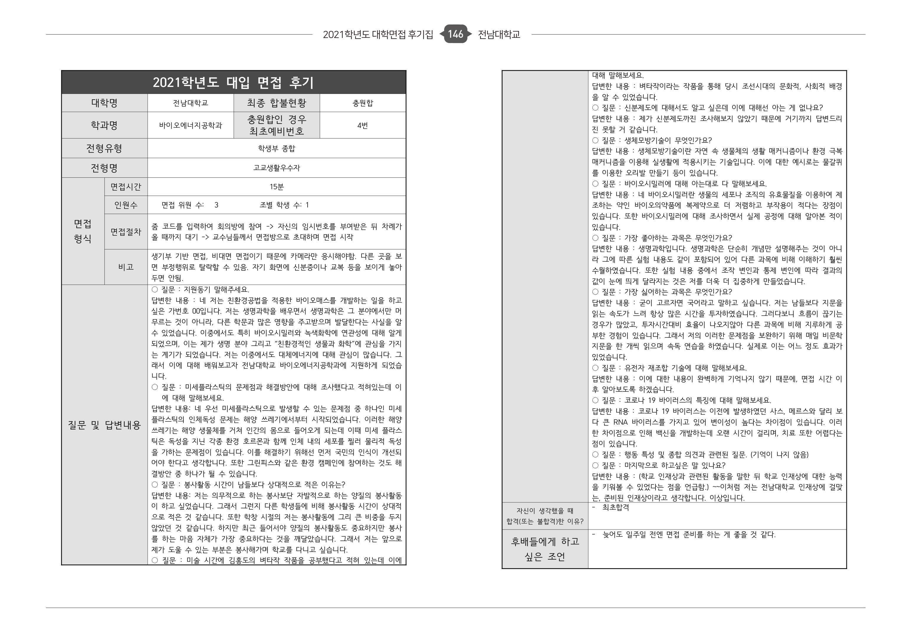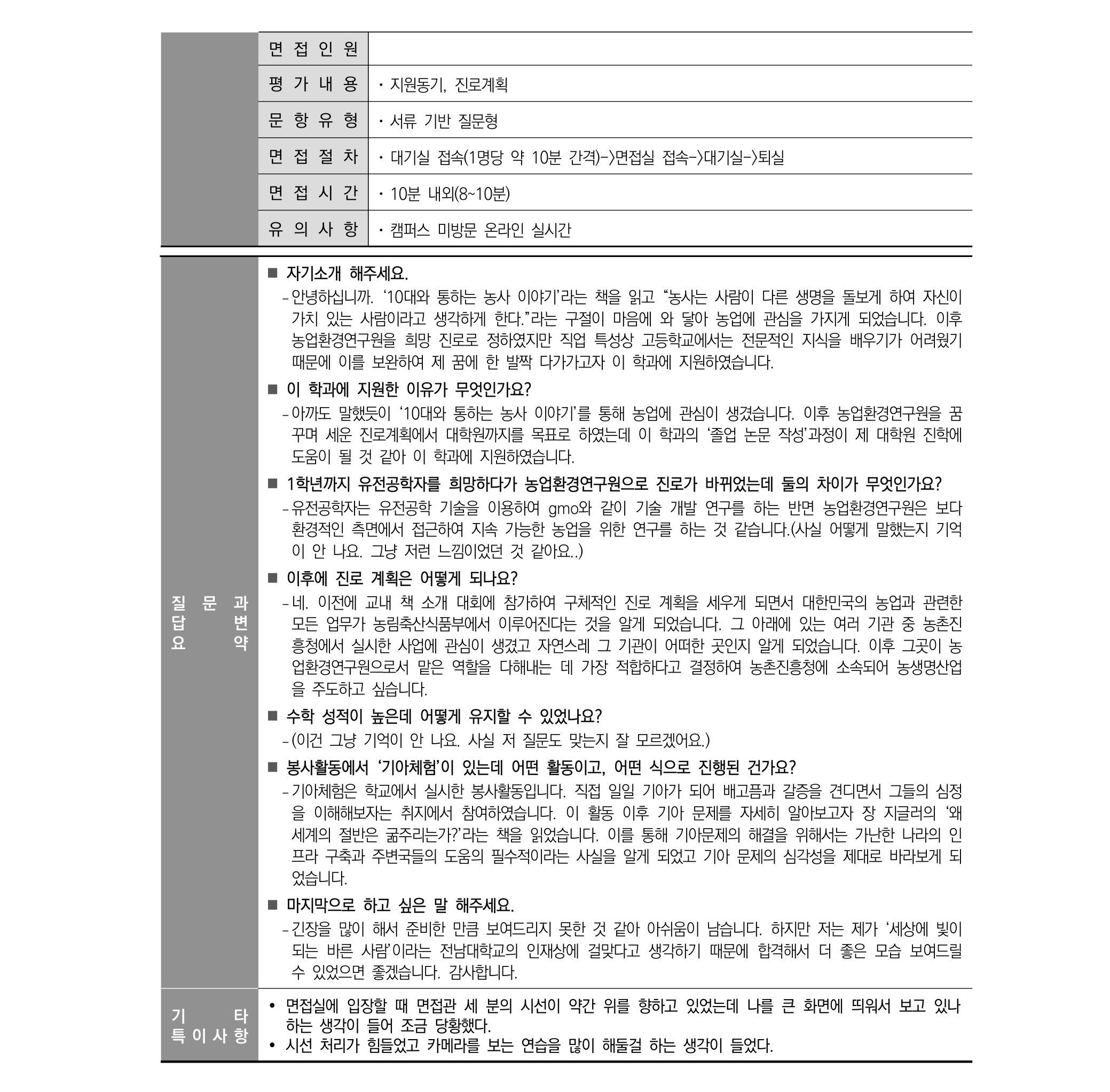 2021학년도 전남대학교 면접 후기10 - 응용생물학과