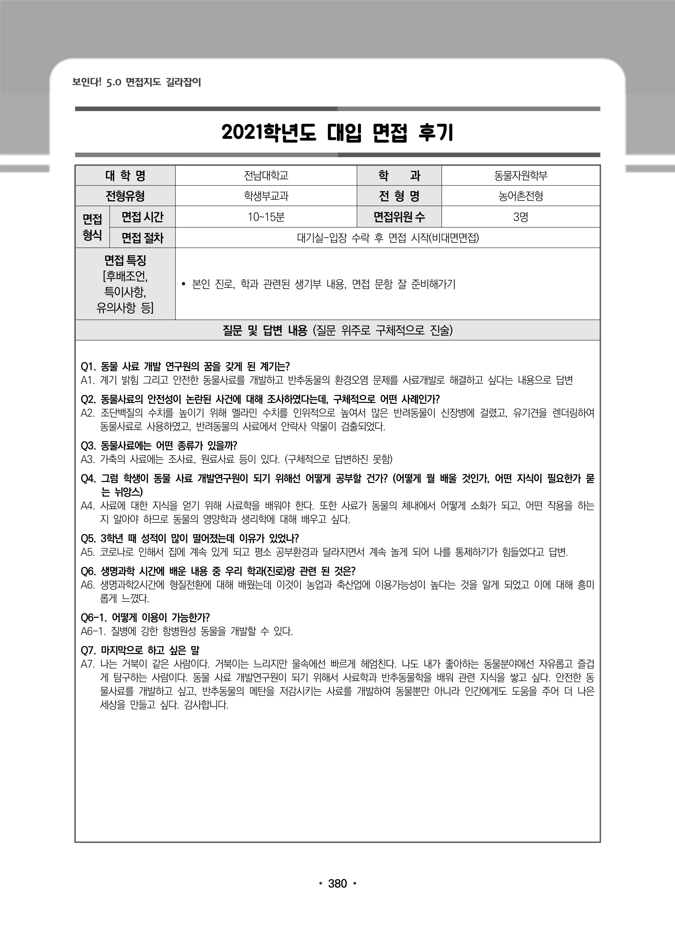 2021학년도 전남대학교 면접 후기3 - 동물자원학부 2021학년도 전남대학교 면접 후기4 - 바이오에너지공학과