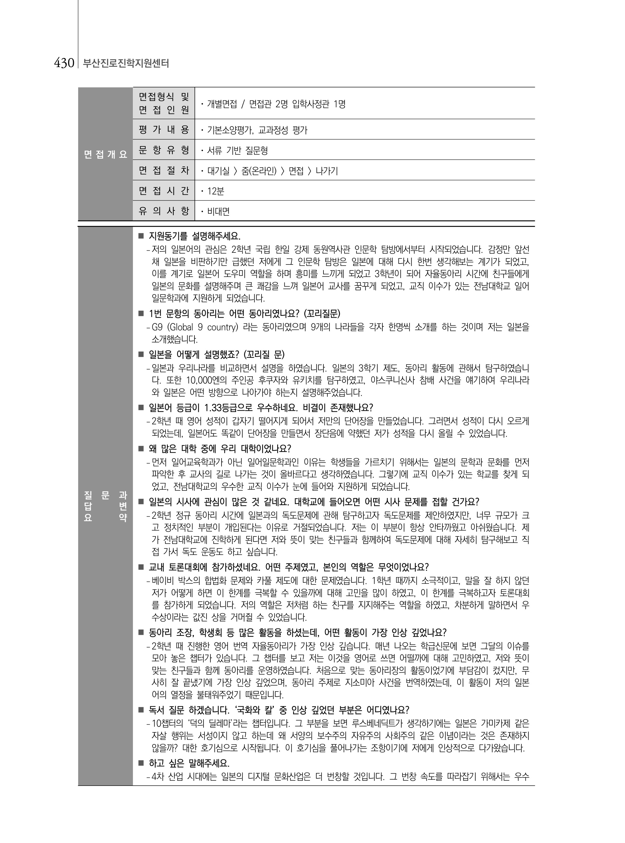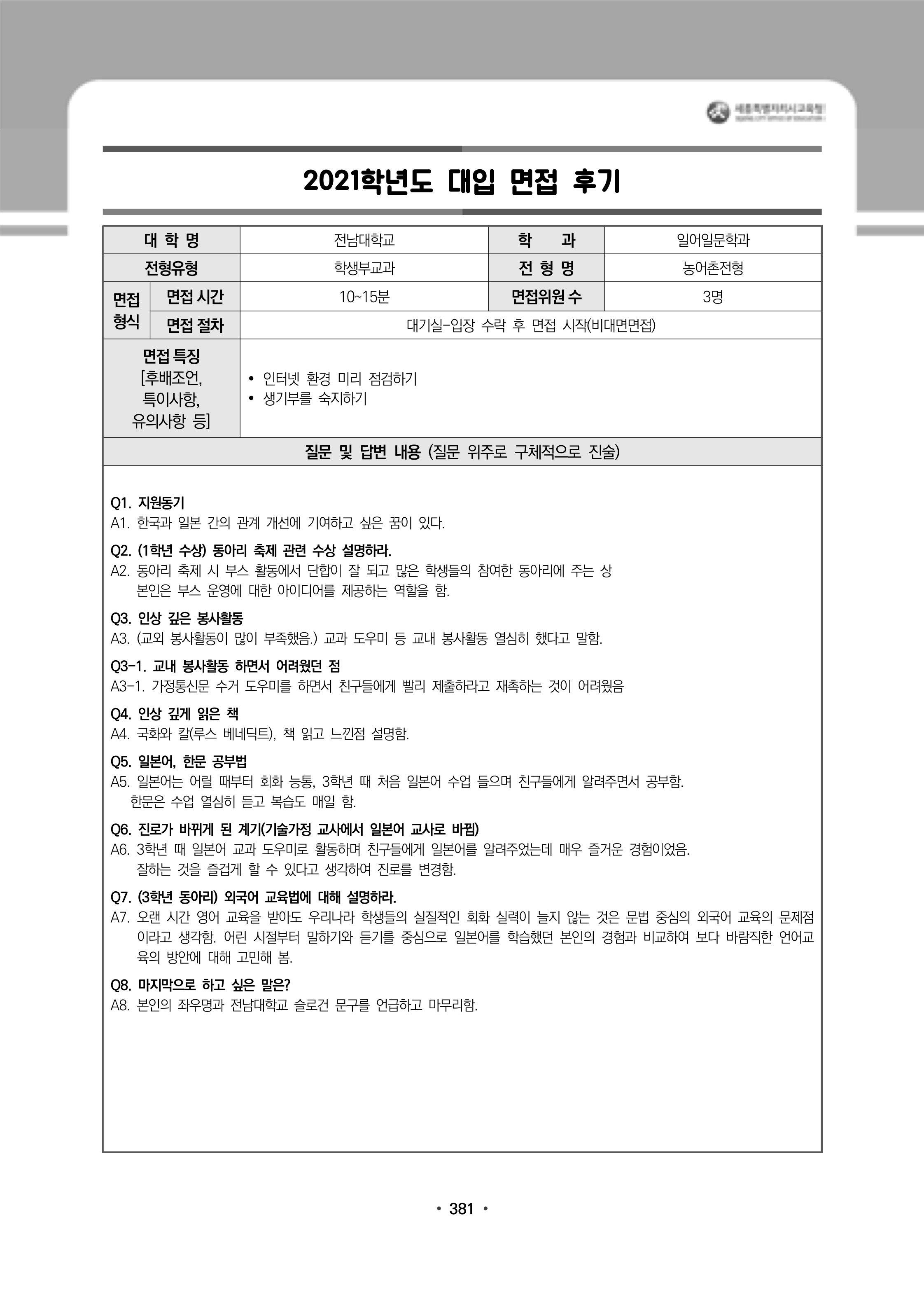2021학년도 전남대학교 면접 후기11 - 일어일문학과
