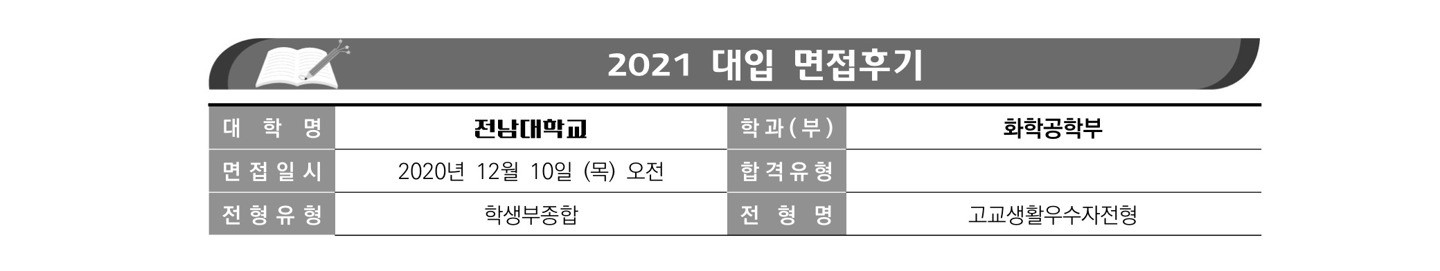 2021학년도 전남대학교 면접 후기18 - 화학공학부 2021학년도 전남대학교 면접 후기19 - 화학공학부