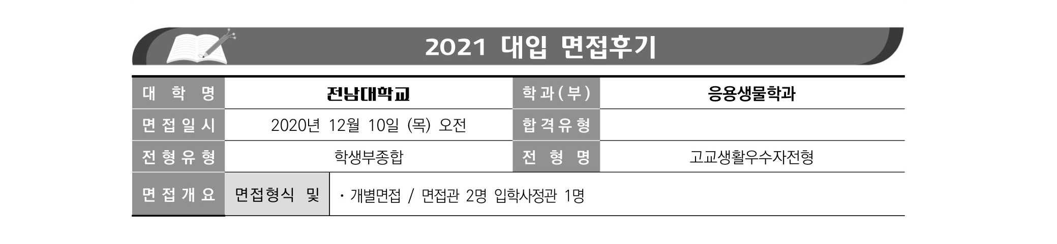 2021학년도 전남대학교 면접 후기9 - 원예생명공학과 2021학년도 전남대학교 면접 후기10 - 응용생물학과