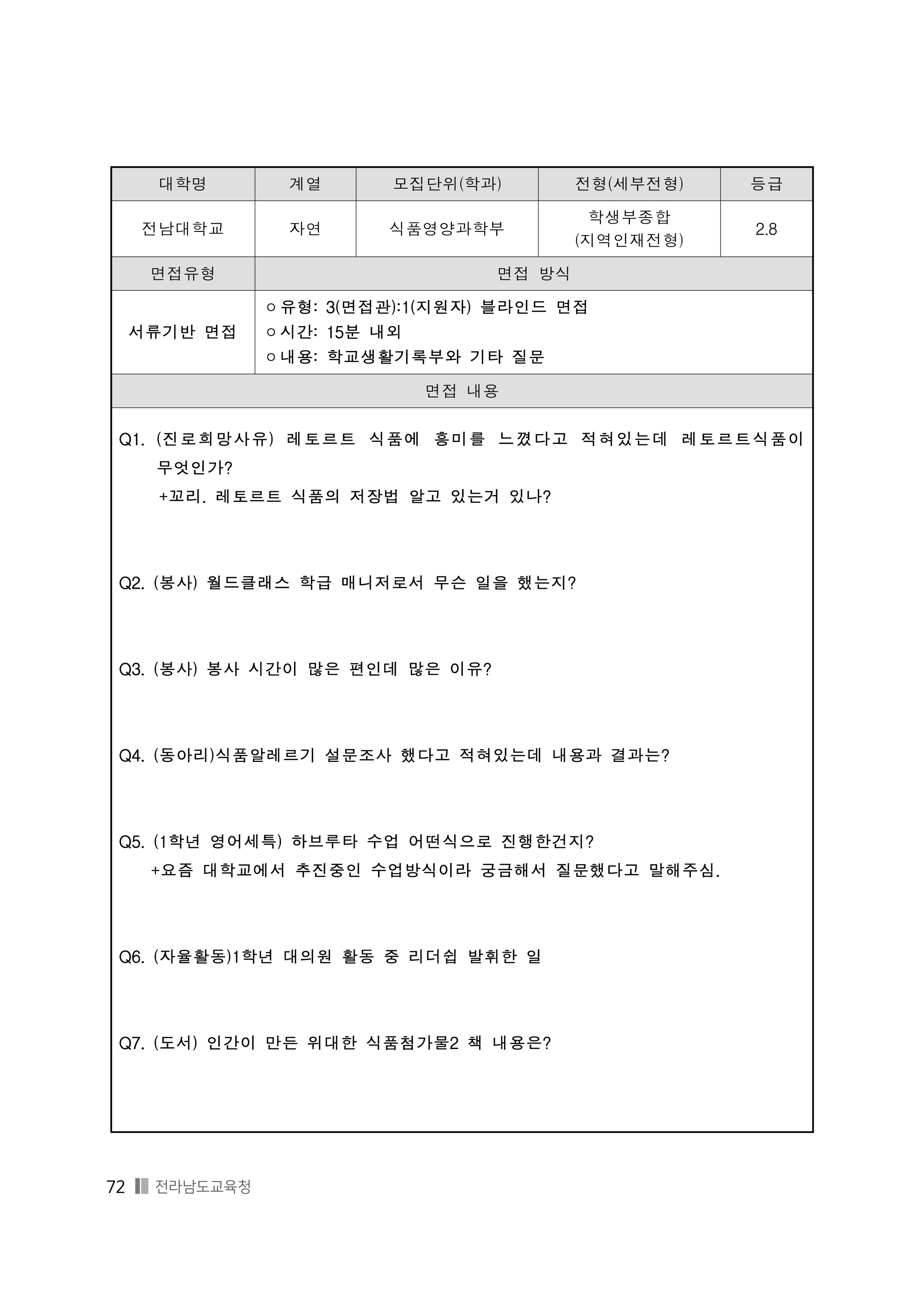 2021학년도 전남대학교 면접 후기6 - 수의예과 2021학년도 전남대학교 수의예과 면접 질문1.jpg0.77MB2021학년도 전남대학교 면접 후기7 - 식품영양과학부