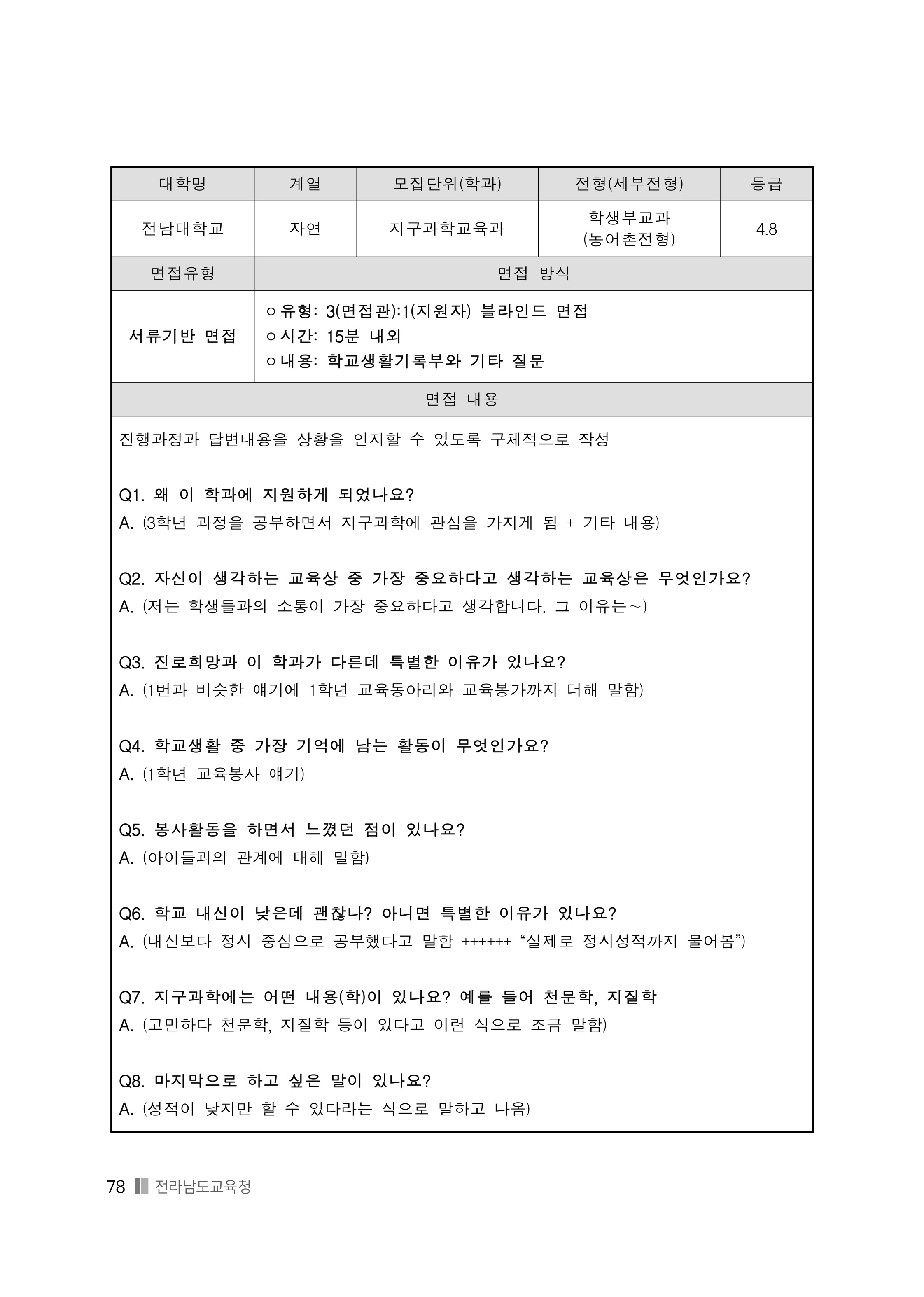 2021학년도 전남대학교 면접 후기16 - 지구과학교육과 2021학년도 전남대학교 면접 후기17 - 지리학과