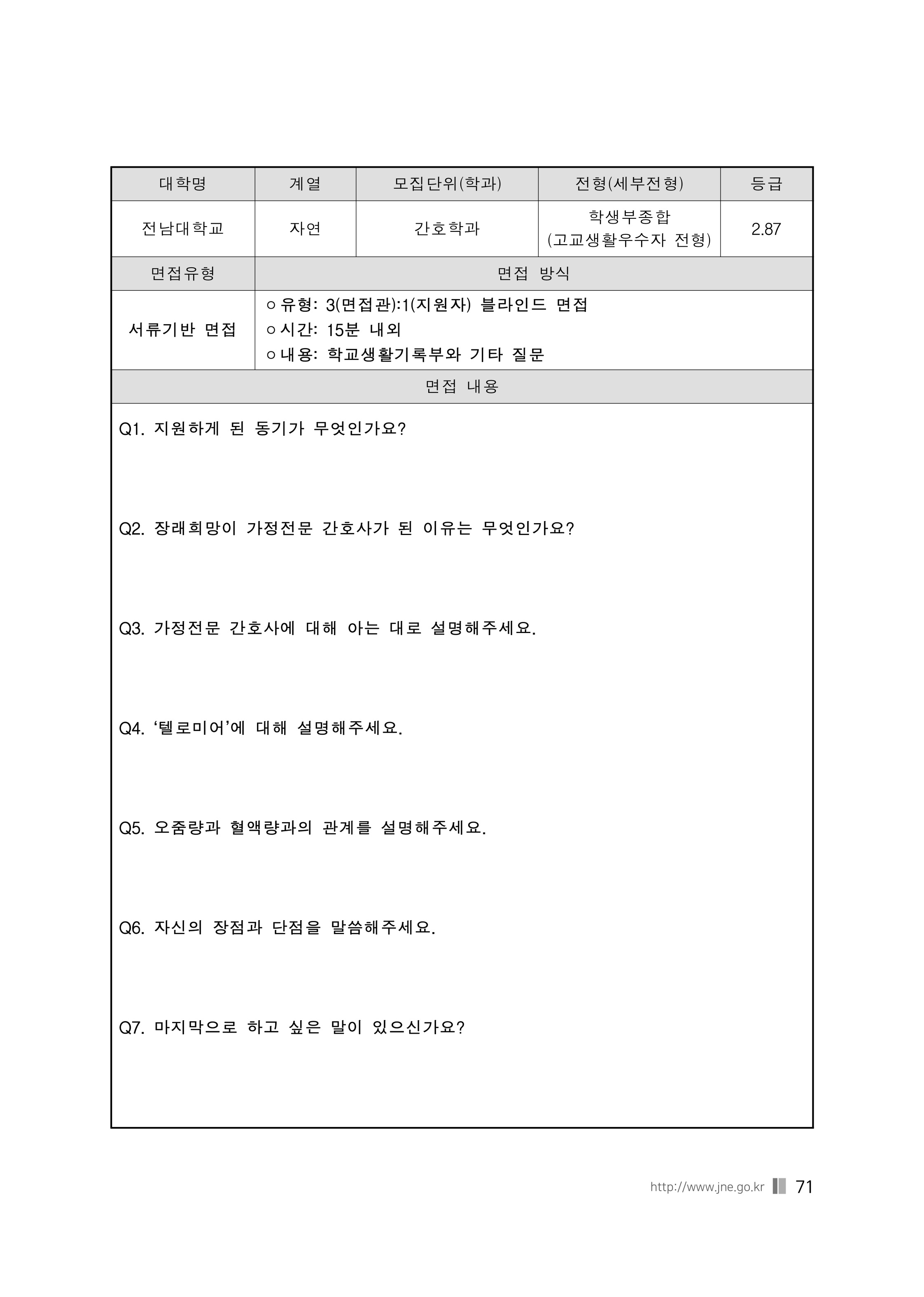 2021학년도 전남대학교 면접 후기1 - 간호학과 2021학년도 전남대학교 면접 후기2 - 간호학과