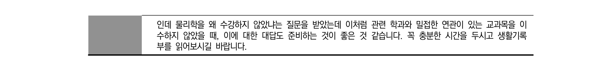 - 진로희망도 화학공학이고 물리동아리 활동도 했습니다. 그런데 3학년 때 과탐 선택을 물리, 화학이 아니라 생명, 지구과학을 했는데 이유가 있나요?