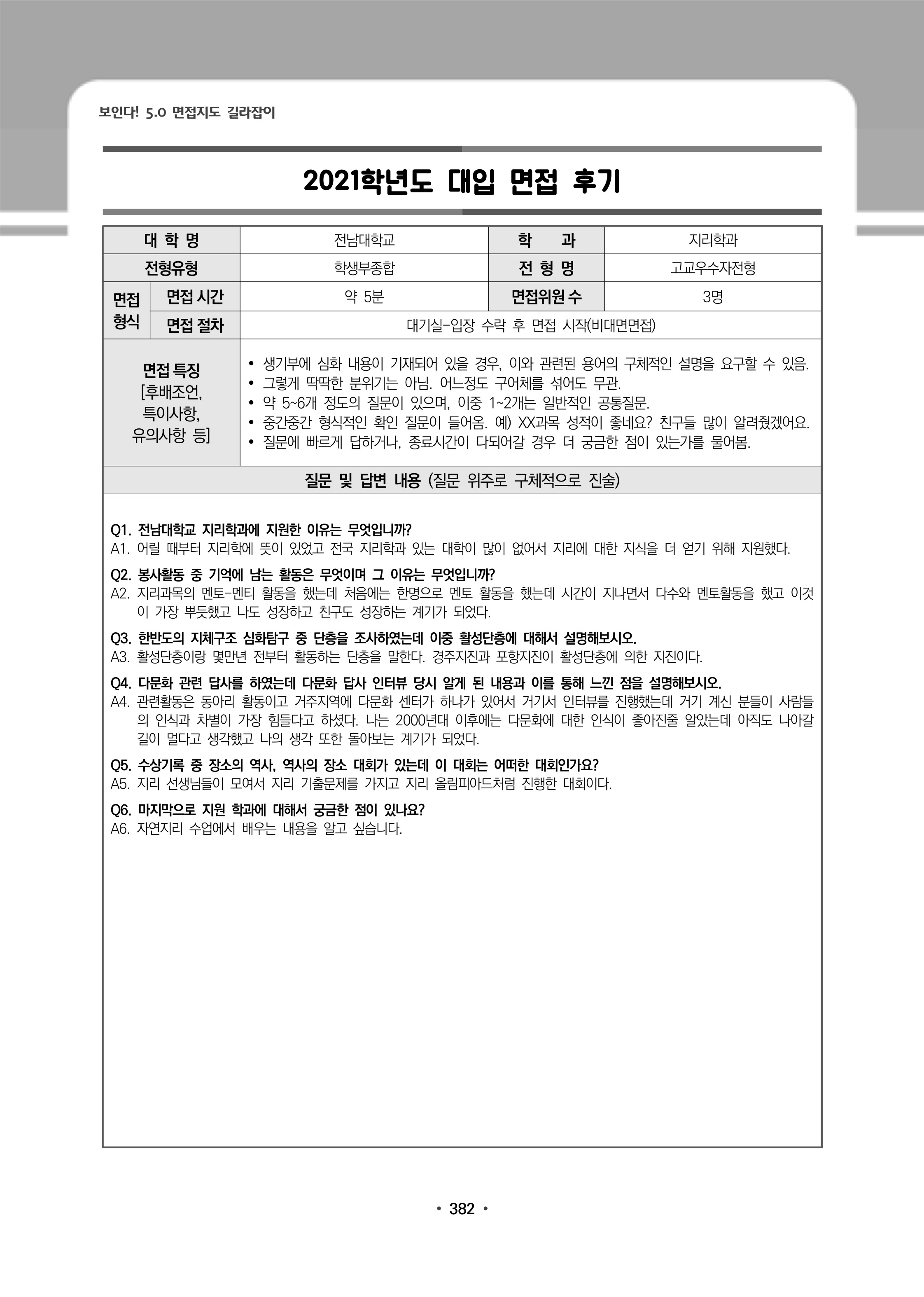 2021학년도 전남대학교 면접 후기17 - 지리학과 2021학년도 전남대학교 면접 후기18 - 화학공학부