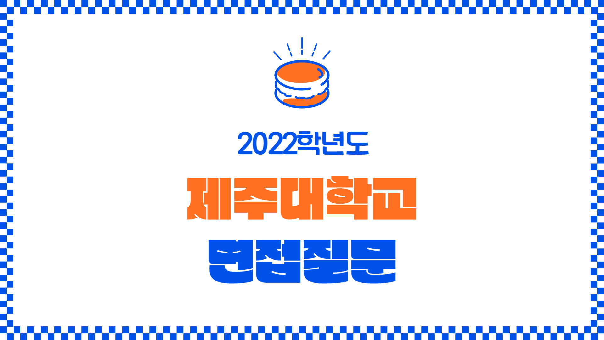 2022학년도 제주대학교 면접 질문 횐님들 안녕하세영! 오늘은 2022학년도 제주대학교 수시전형에서 출제된 면접 질문에 대해서 알아볼 거예영. 제주대학교 학생부종합 일반학생전형과 소프트웨어인재전형에 지원하신 횐님들은 면접을 봐야하는데영, 면접에서는 전공적합성, 자기주도성, 인성·공동체기여도를 평가합니다. 제주대에서는 면접질문 예시를 공개하고 있으니 면접 전에 꼼꼼히 살펴보시고영, 선배들의 면접 후기도 읽어보세영.😉