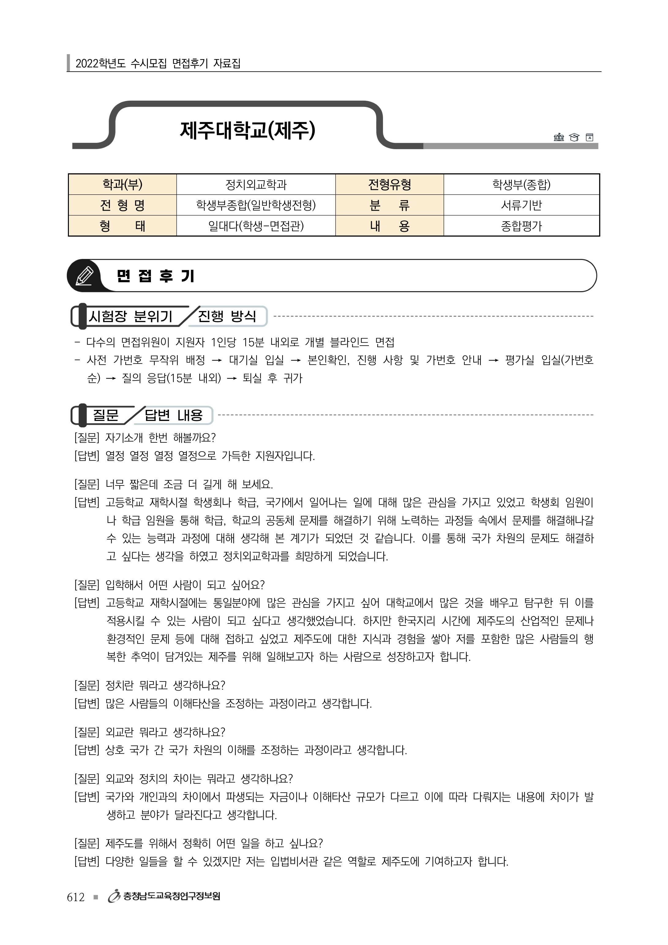 2022학년도 제주대학교 면접 후기4 - 정치외교학과