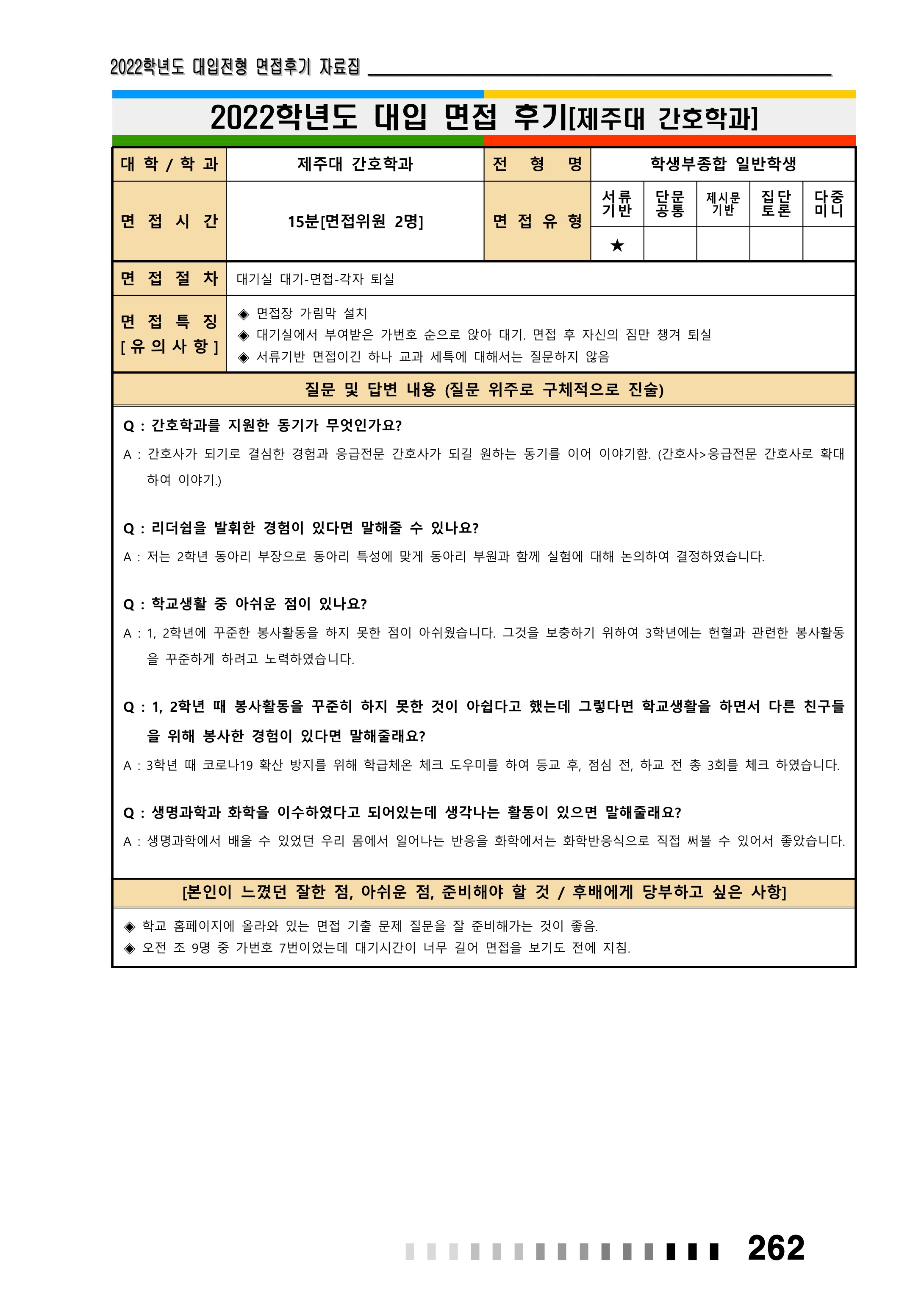 2022학년도 제주대학교 면접 후기1 - 간호학과 2022학년도 제주대학교 면접 후기2 - 간호학과