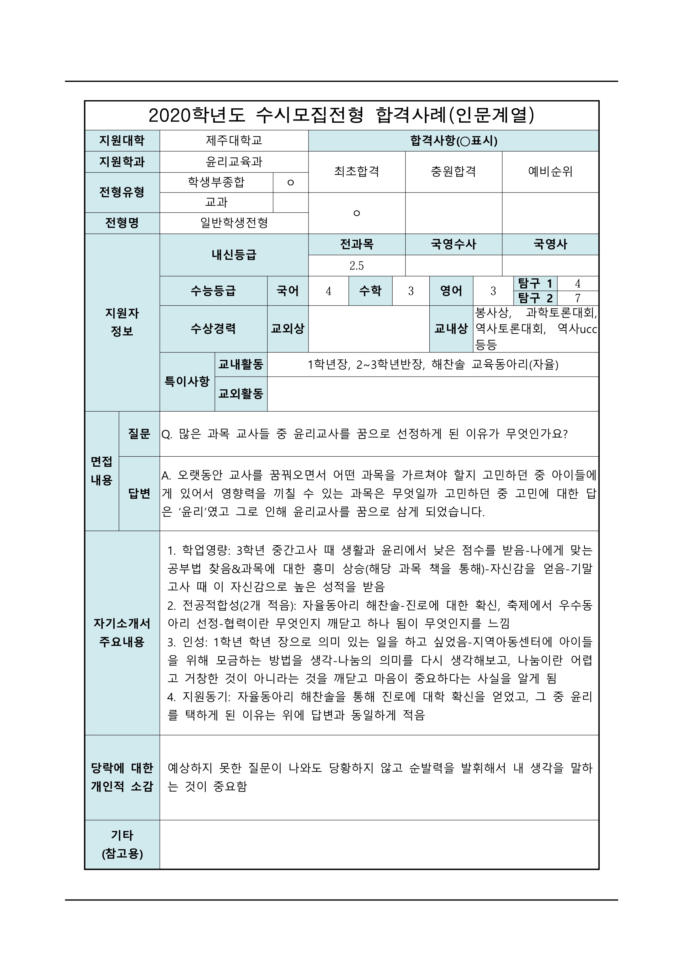 2021학년도 제주대학교 면접 질문입시 정보/면접 2022. 12. 11. 21:19