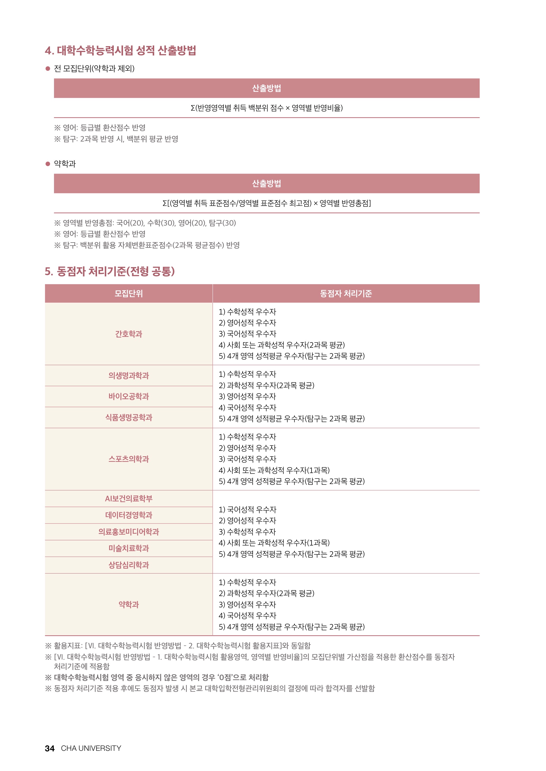 2022학년도 차의과학대학교 대학수학능력시험 반영방법 2022학년도 차의과학대학교 정시등급