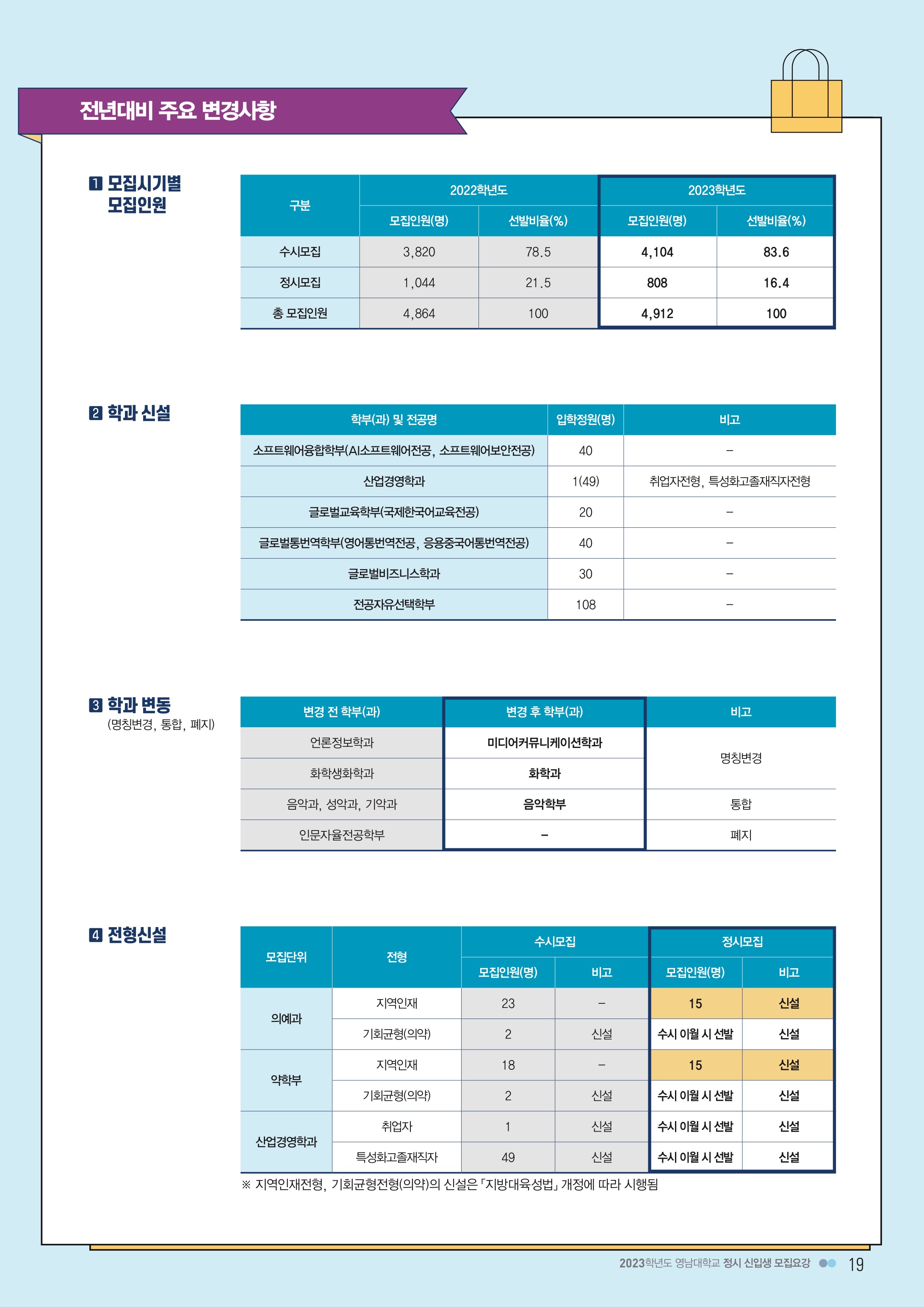 2023학년도 영남대학교 정시모집 전년 대비 변경사항