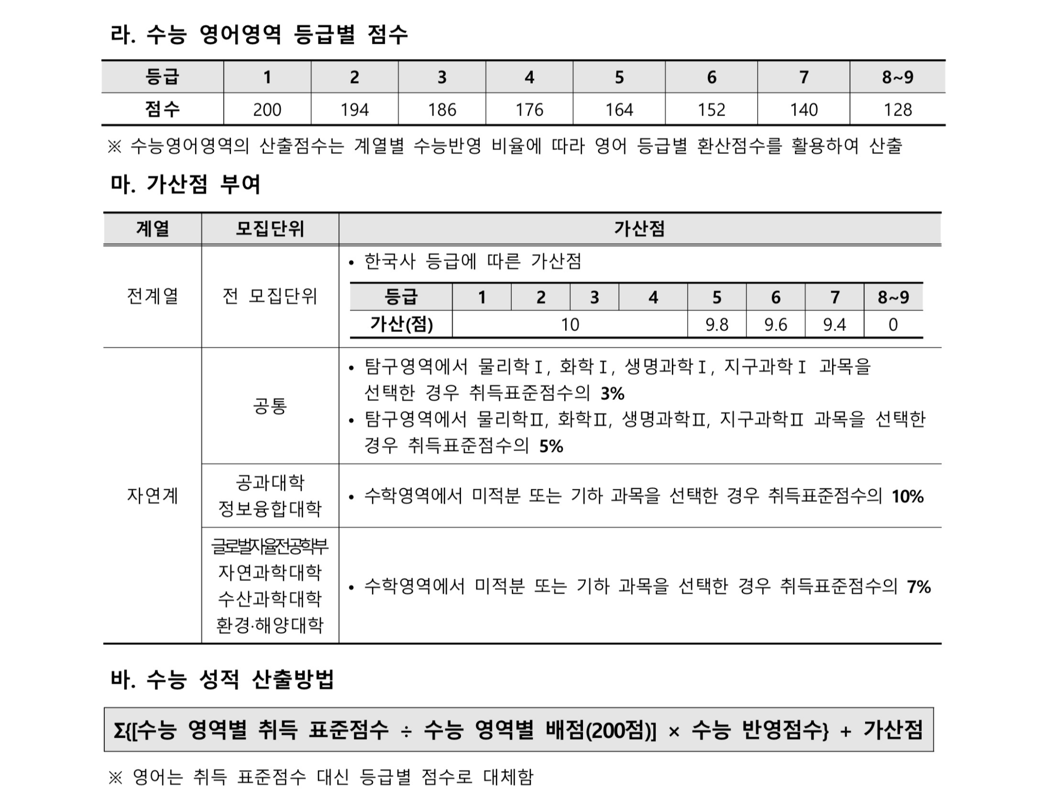 2022학년도 부경대학교 대학수학능력시험 반영방법 2022학년도 부경대학교 정시등급